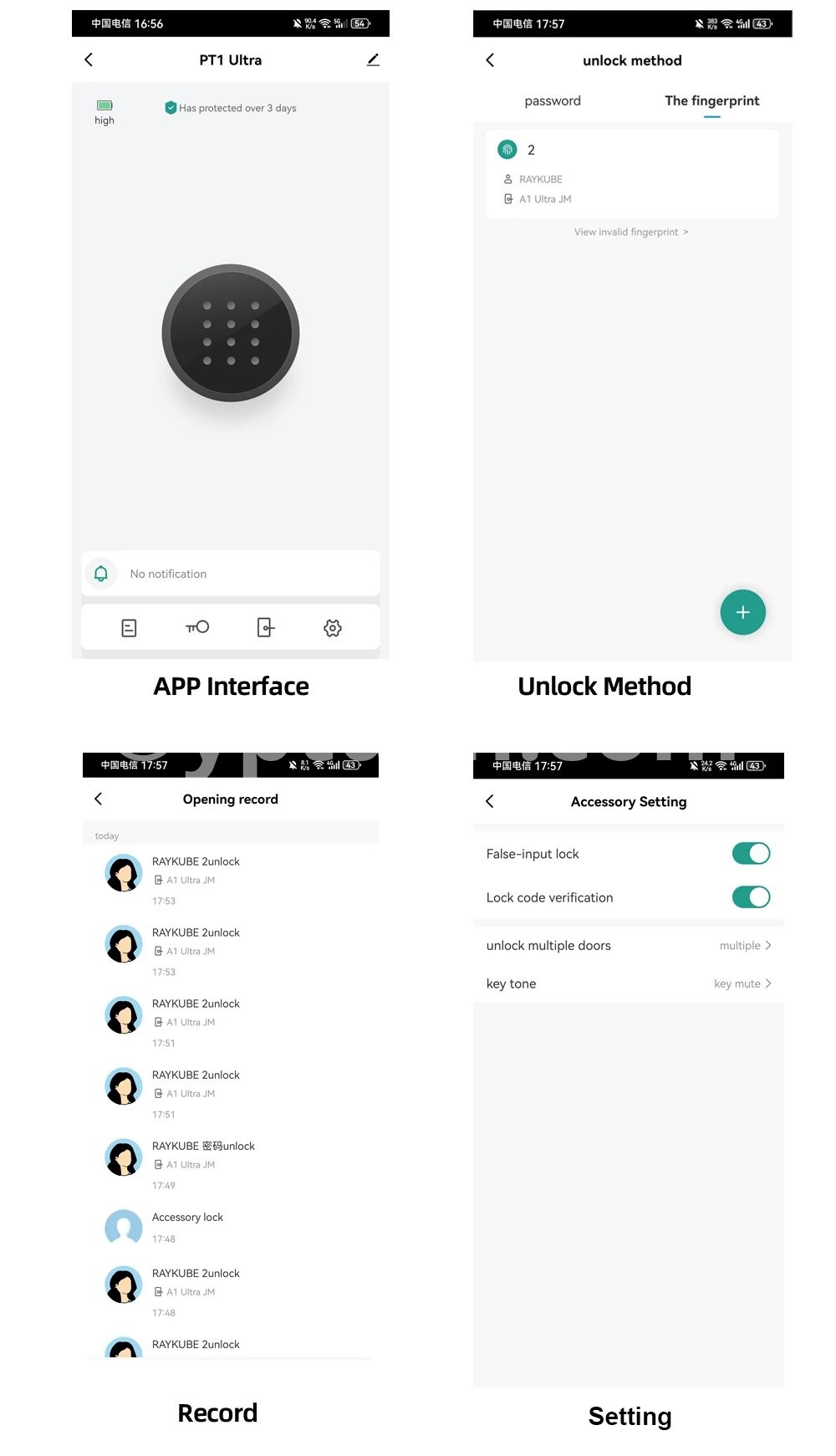 Tuya APP management, can set temporary passwords, one-time passwords, fingerprints, and view unlock records
