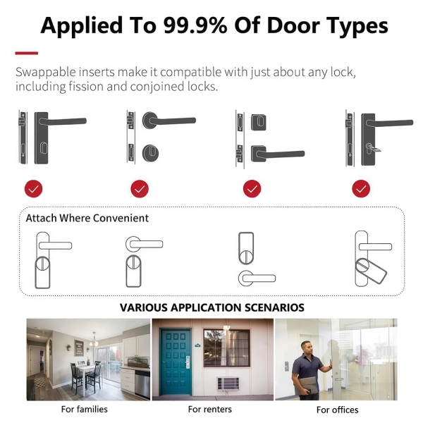 Simply peel and stick to your door using durable but removable 3M adhesive(in the package).