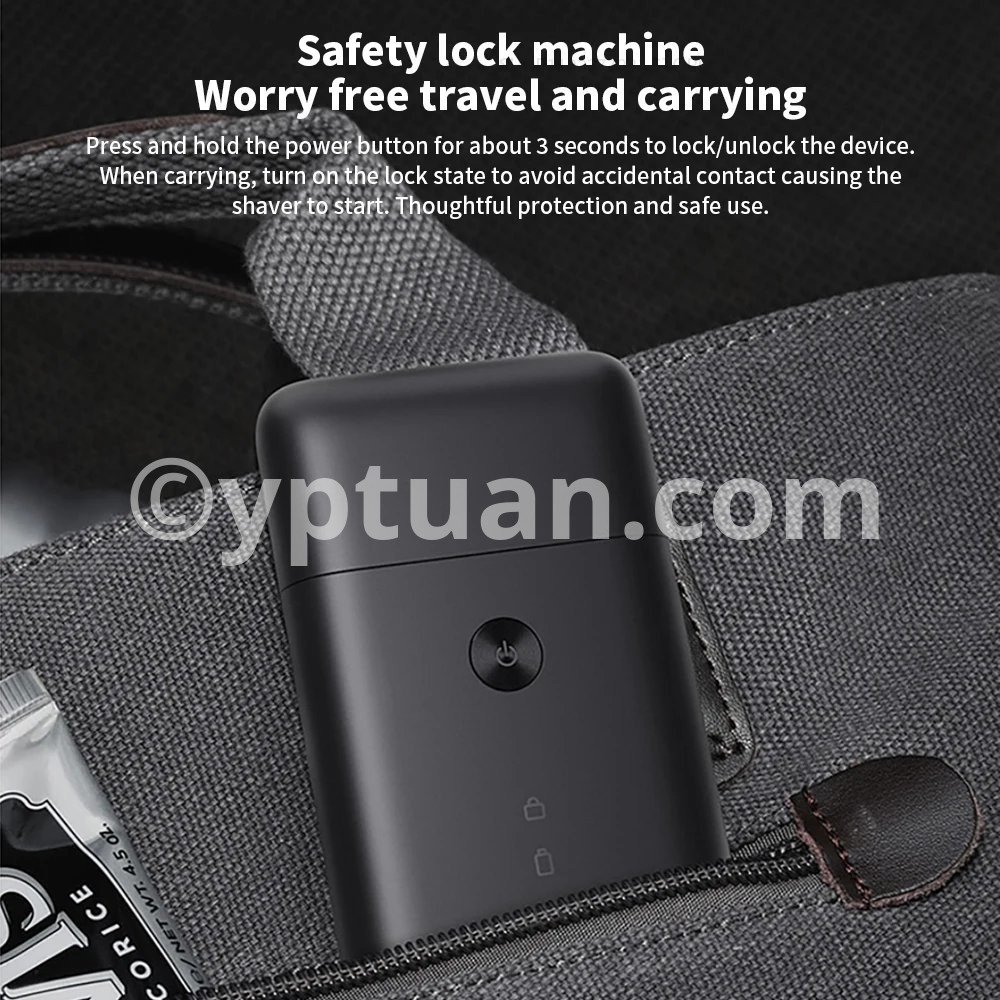 Press and hold the power button for 3 seconds to lock or unlock the shaver. Locked on when carrying to avoid turning on by accident.
