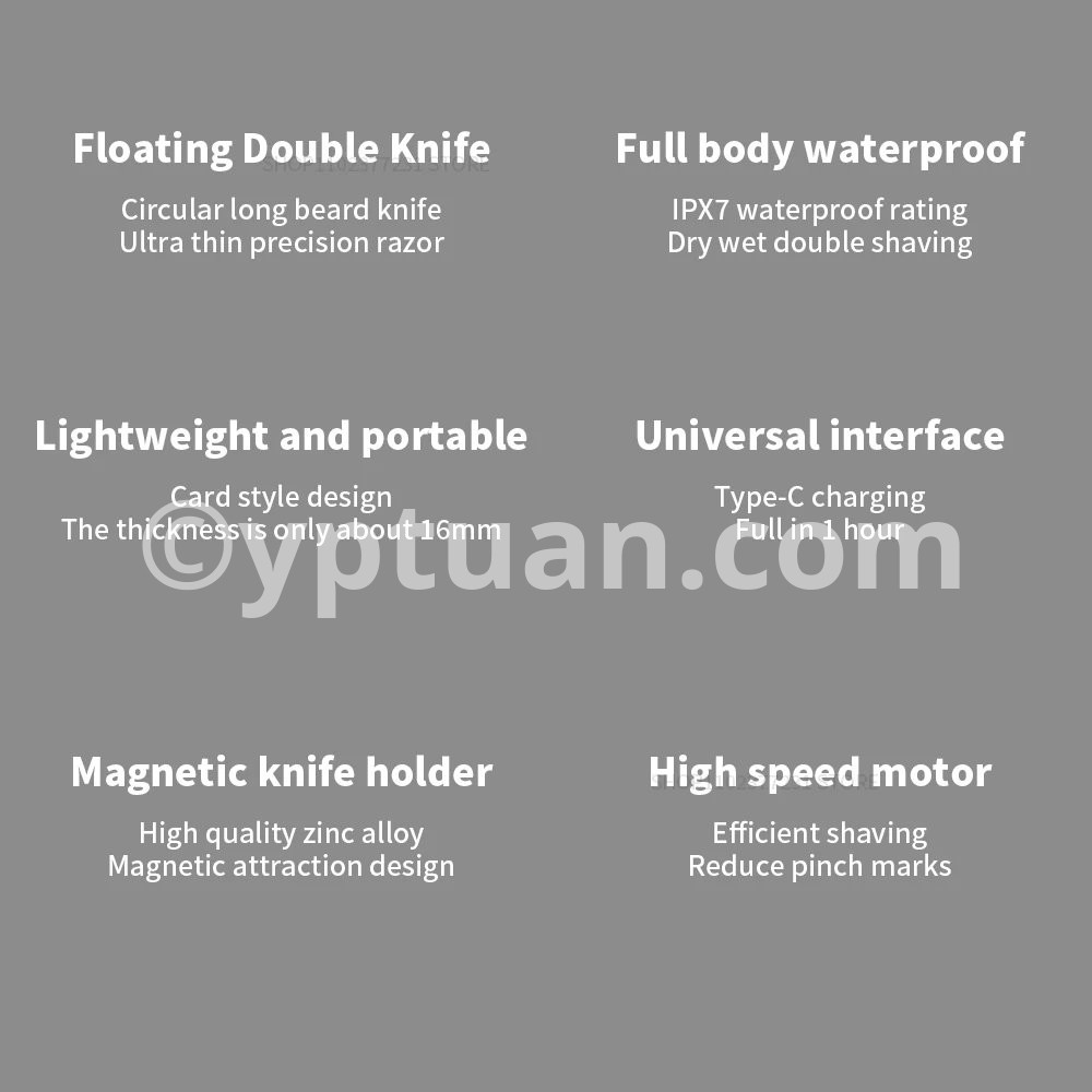 This stylish, compact, and effective electric shaver will bring you confidence every day with a clean, smooth shave. Its small size, simple design, upgraded dual-blade system, and water splash-proof features, mean the Xiaomi Portable Dual Blade Electric Shaver is the best partner for a well-groomed you.