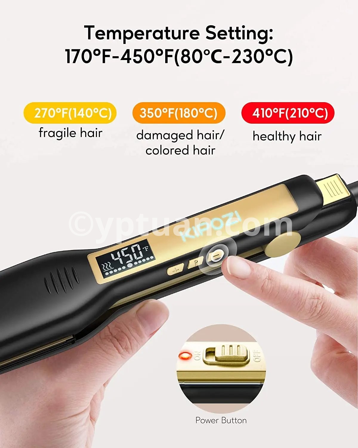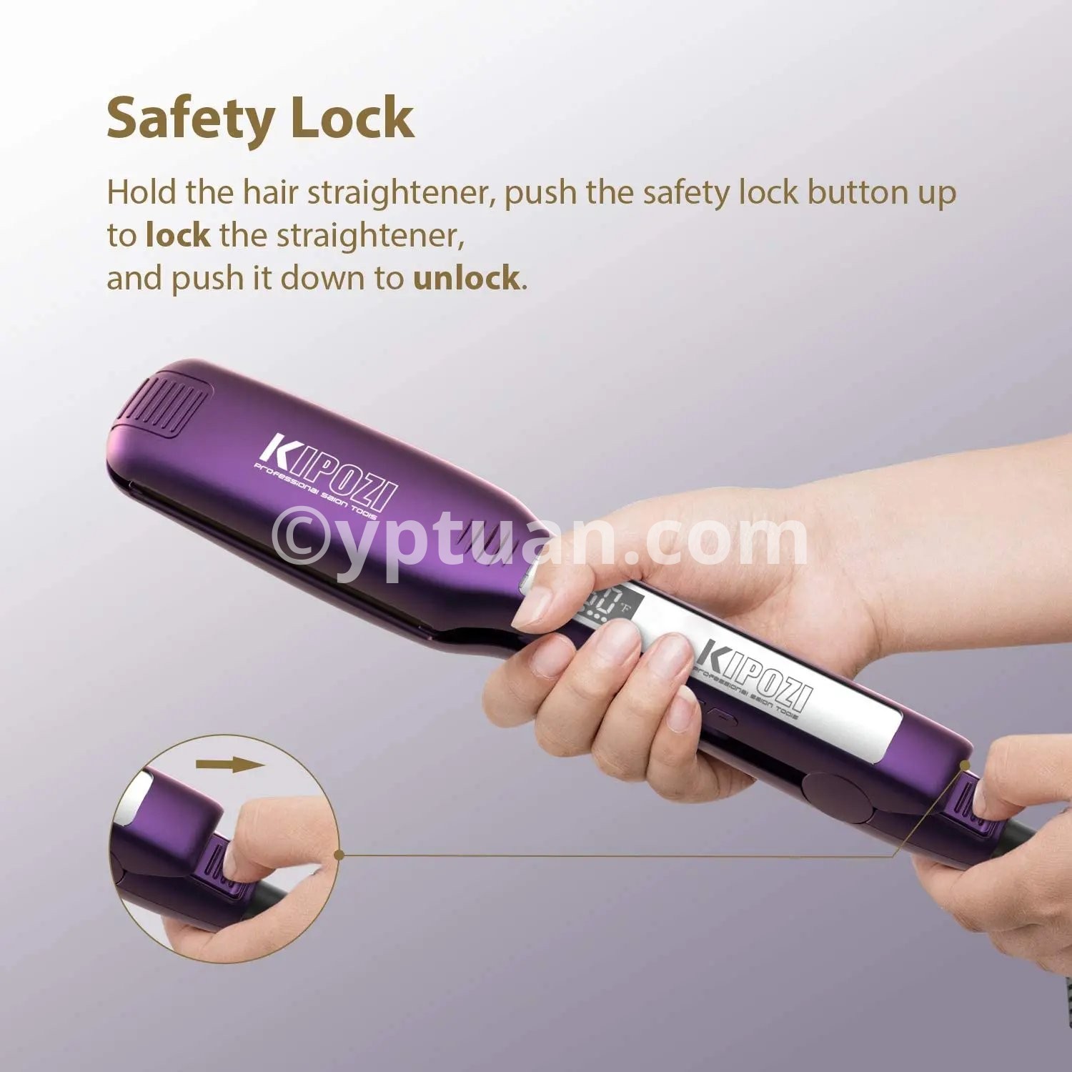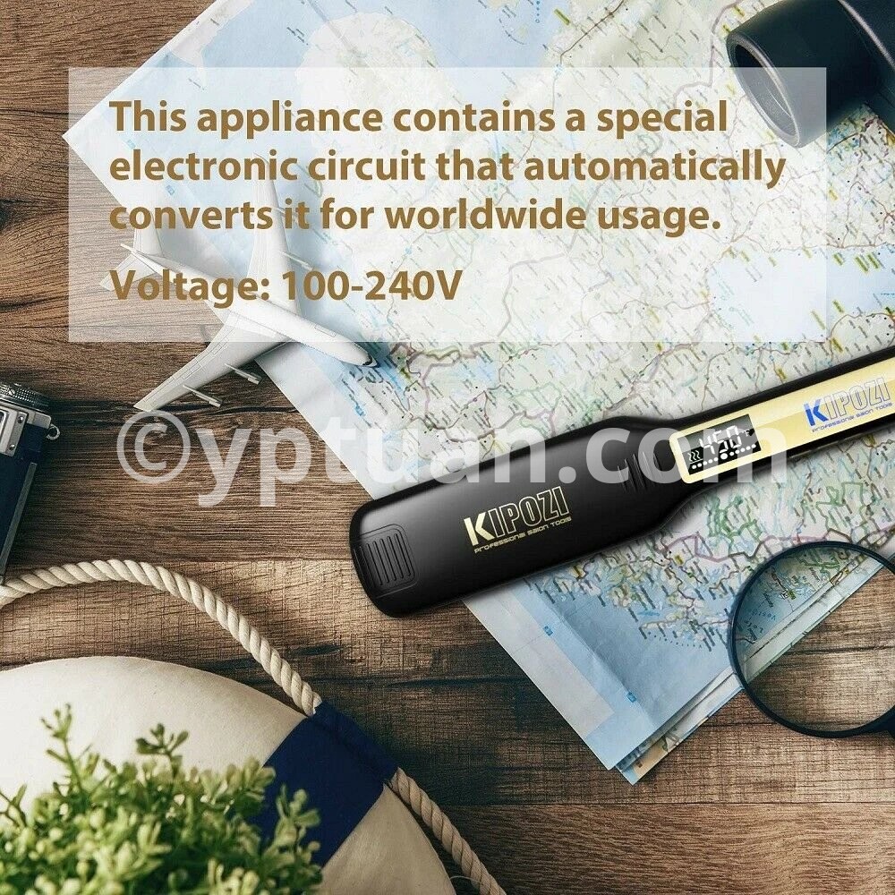 KIPOZI Professional Titanium Flat Iron Hair Straightener with Digital LCD Display Dual Voltage Instant Heating Curling Iron