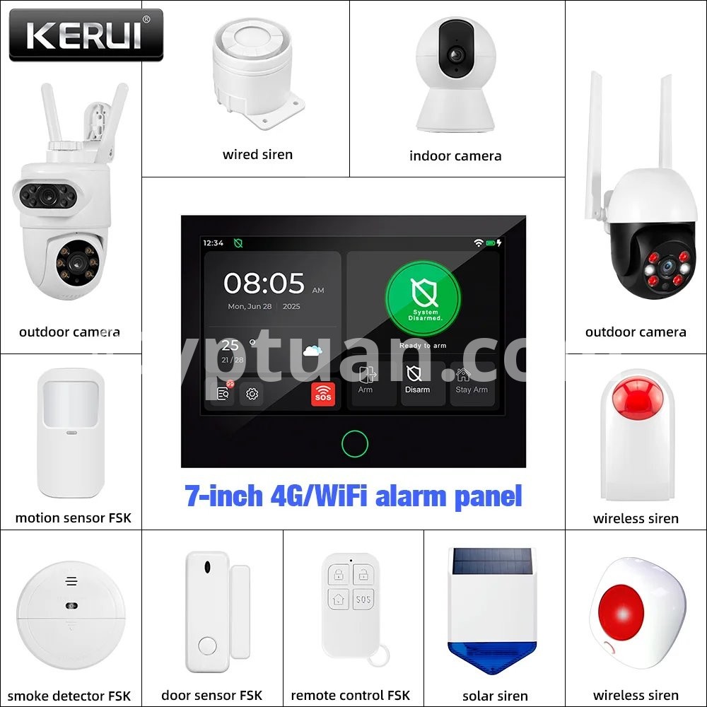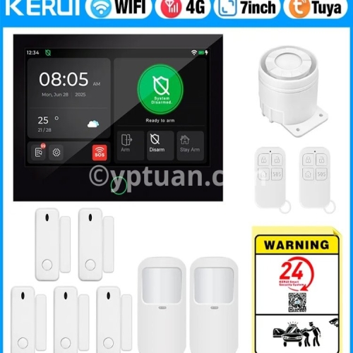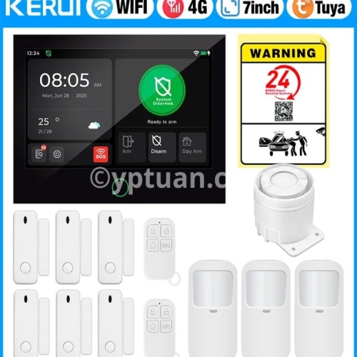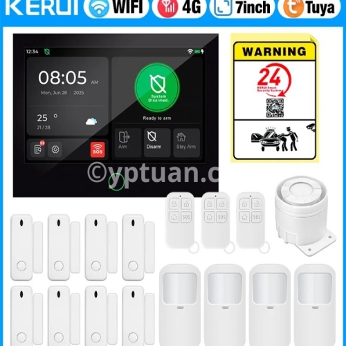 KERUI 4G/WiFi Home Alarm System with 7 Inch Touch Screen Tuya Smart Wireless Home Burglar Alarm with Motion Detector Door Sensor