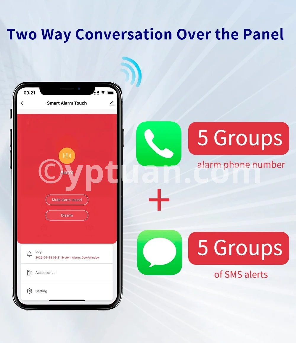 5 Groups alarm phone number. 5 Groups of SMS alerts.