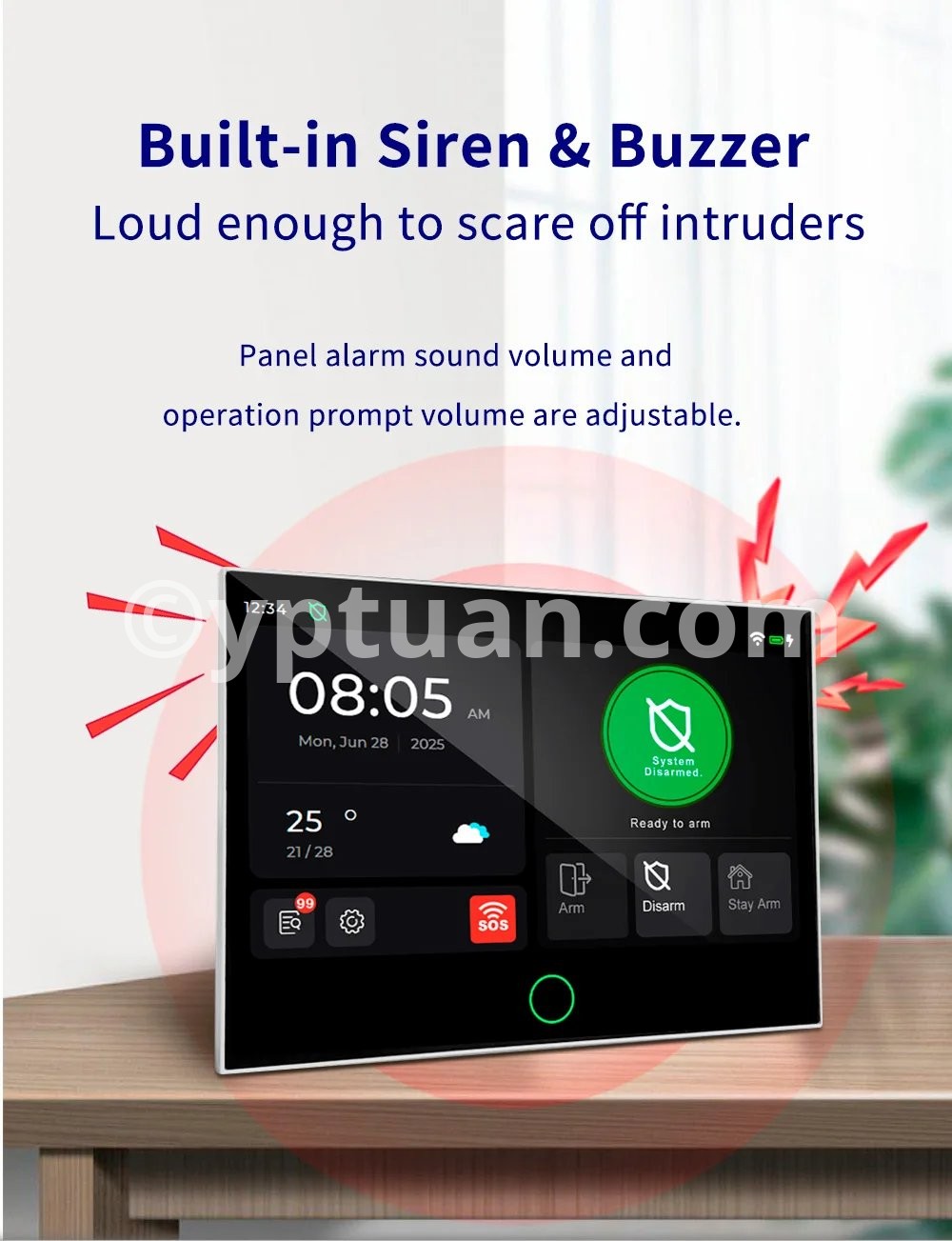 Built-in Siren & Buzzer: Loud enough to scare off intruders