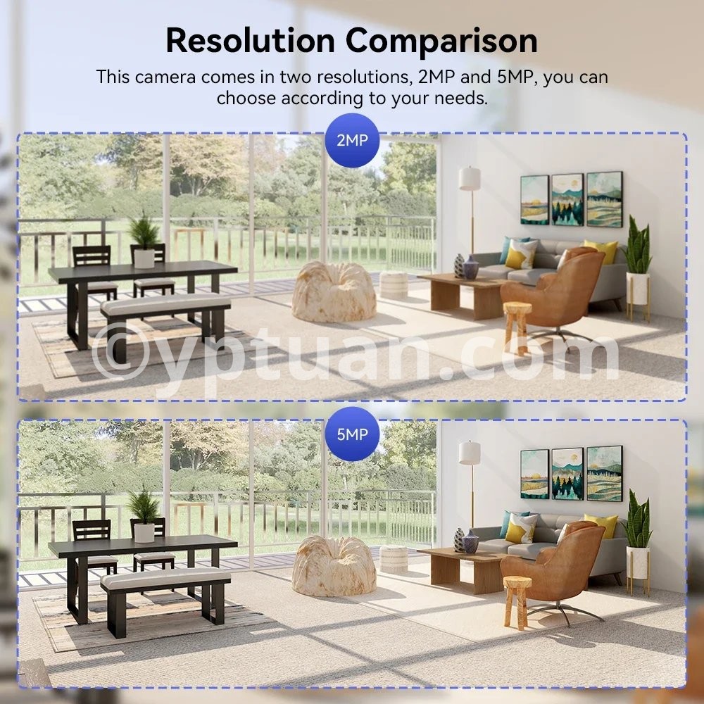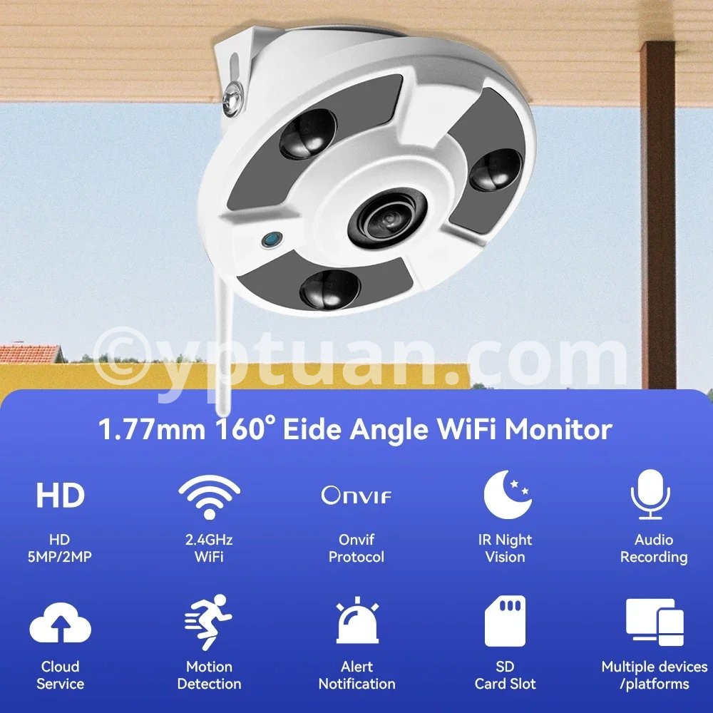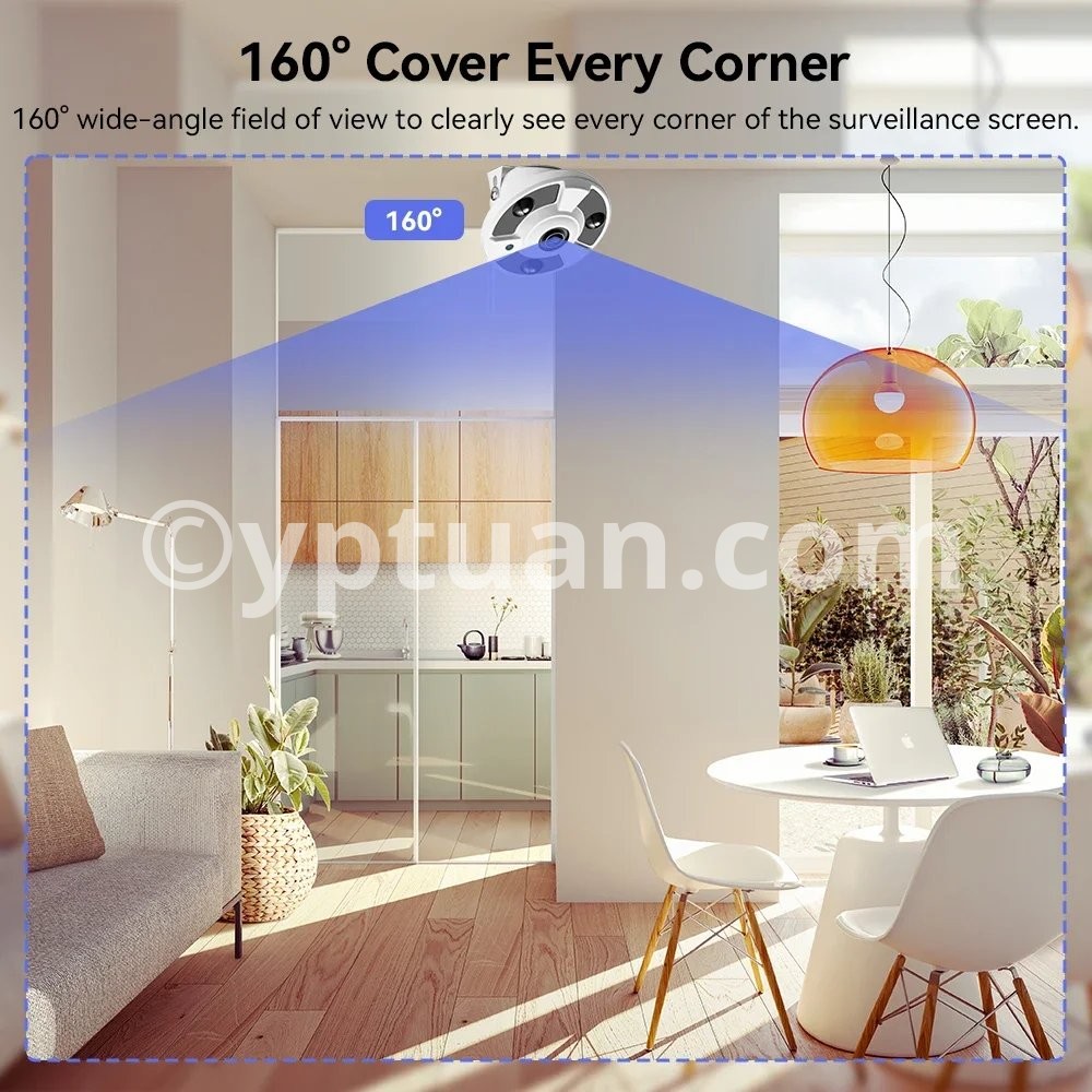 160° Cover Every Corner 5MP 1.7mm panoramic lens,160 degree wide angle.