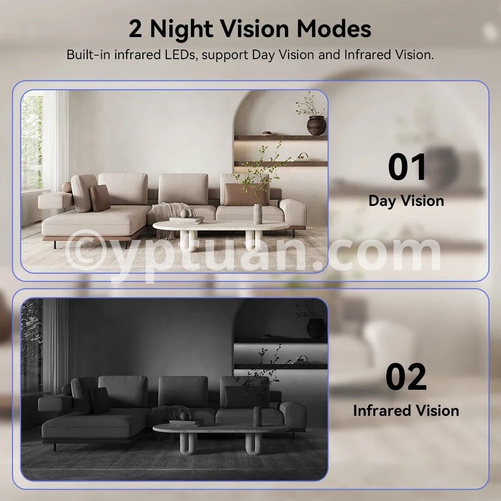 2 Night Vision Modes Built-in infrared LEDs, support Day Vision and Infrared Vision.