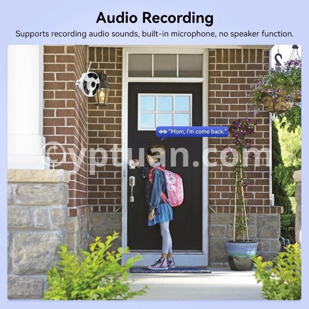 Audio Recording Supports recording audio sounds, built-in microphone, no speaker function.