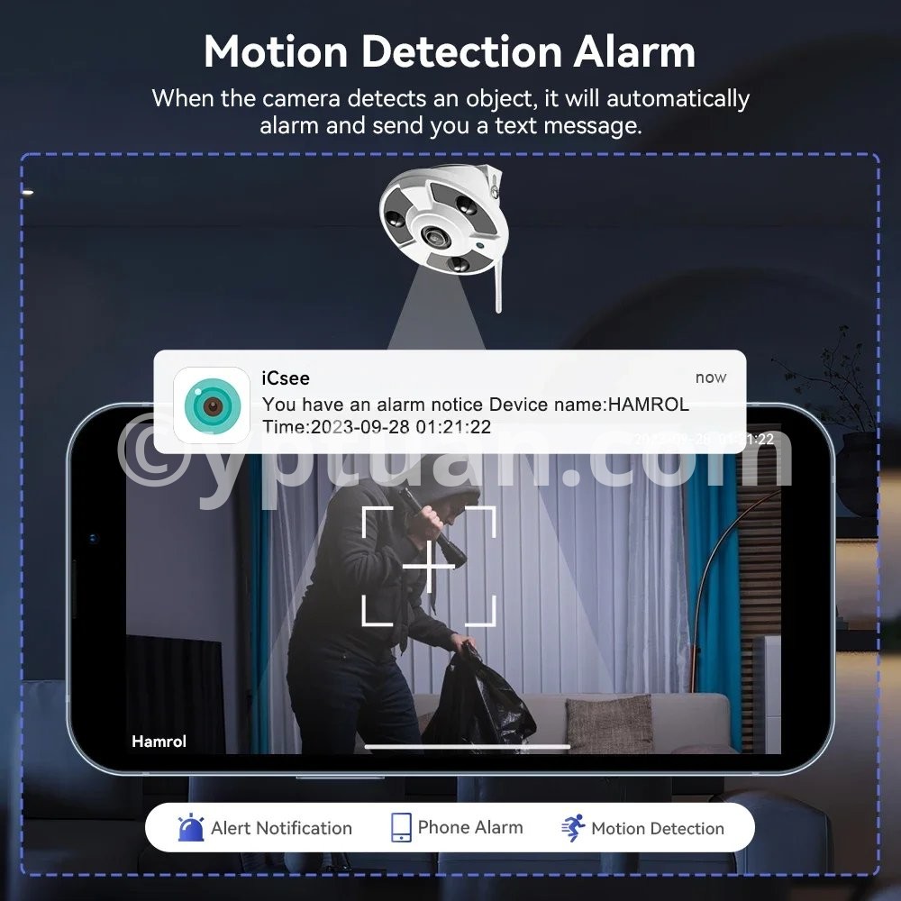 Motion Detection Alarm When the camera detects an object, it will automaticallyalarm and send you a text message.