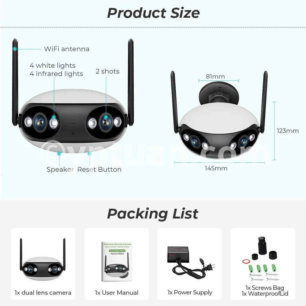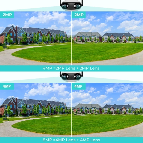 4K 8MP Dual Lens Camera, 4MP(single len) + 4MP (single len)= 4K 8MP (Dual Lens) 4MP Dual Lens Camera, 2MP(single len) + 2MP (single len)= 4MP (Dual Lens)