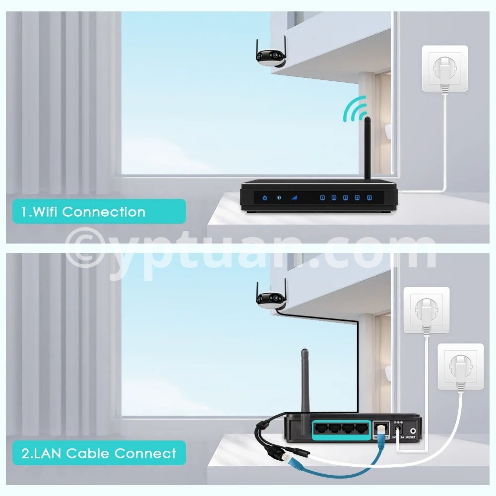 Powered by DC12V adapter, you can connect the camera to Wi-Fi network. you can setup wifi connection of the camera or LAN Search with network cable connected to router, work with 2.4G wifi only (Does not support 5G).
