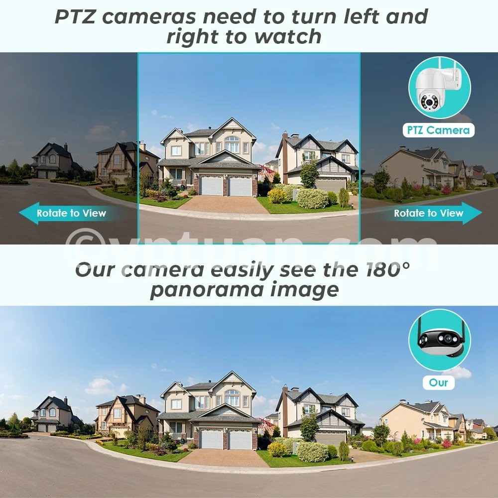 Ordinary PTZ cameras can not view the previous imaging while you Keep it rotating, need to turn left and right back to review . But the binocular splicing camera still can easily see the 180° panorama image via picture in picture while rotating .