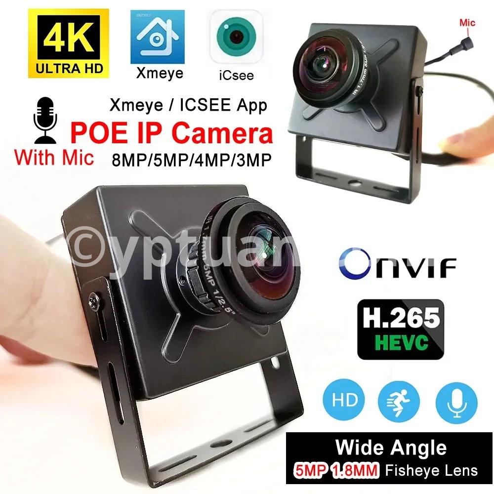 4K Audio IP POE Mini Camera 5MP 1.8mm Fisheye Lens 8MP 5MP 4MP 3MP Motion Detection Home Indoor CCTV Surveillance Camera Xmeye icsee app
