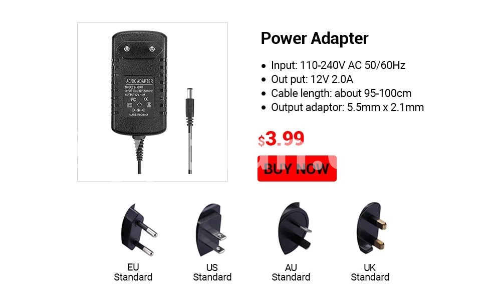 This camera is not with power adapter (DC12V Version) , if you need, please click the picture to buy.