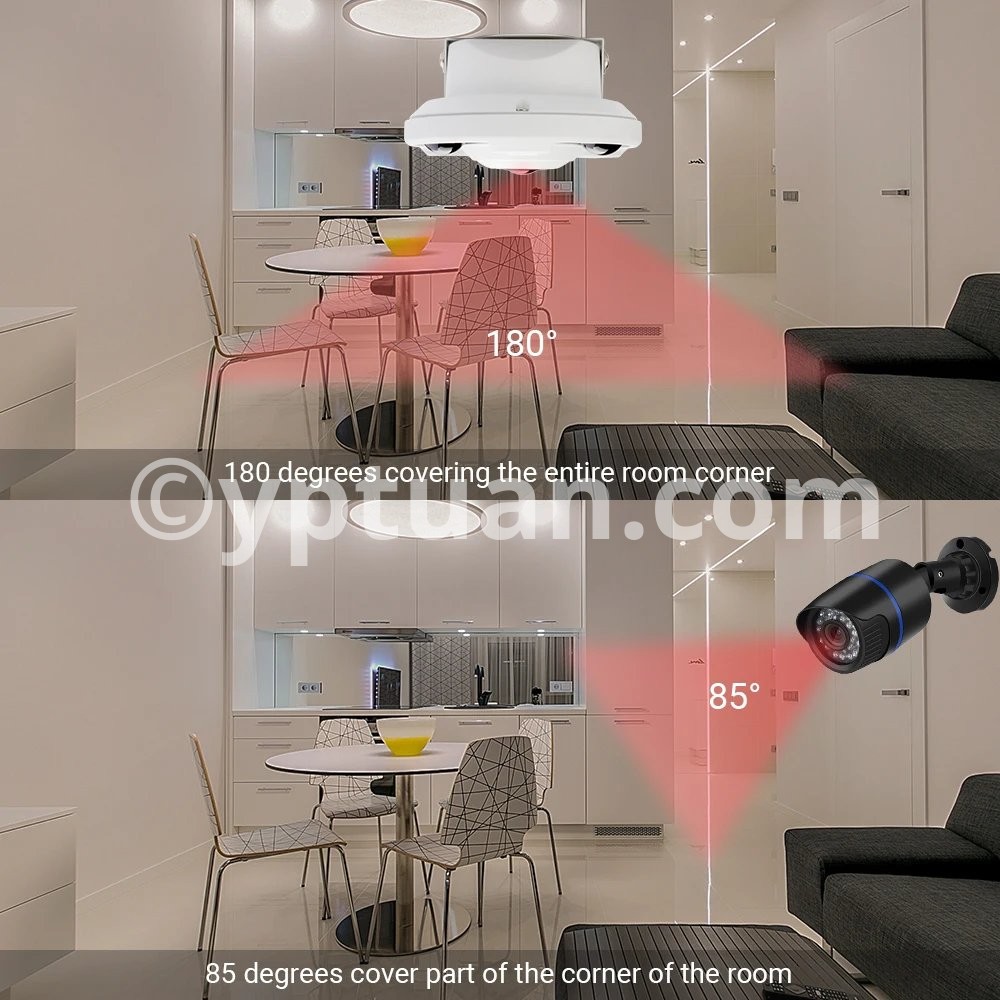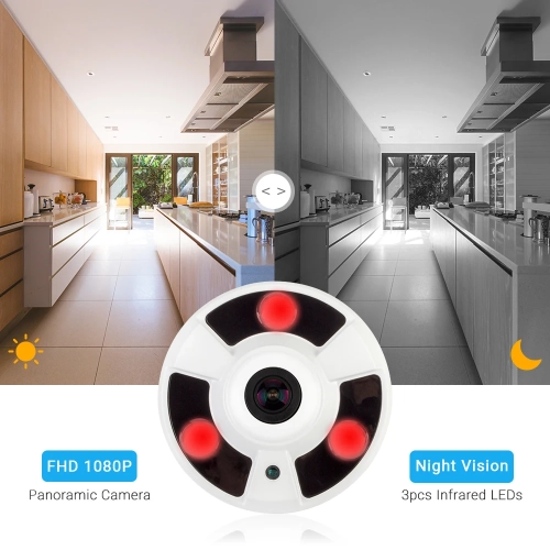 With 5MP 1.7mm fisheye lens,up to 180degree wide angle.One Panoramic camera equal with 3pcs normal camera .