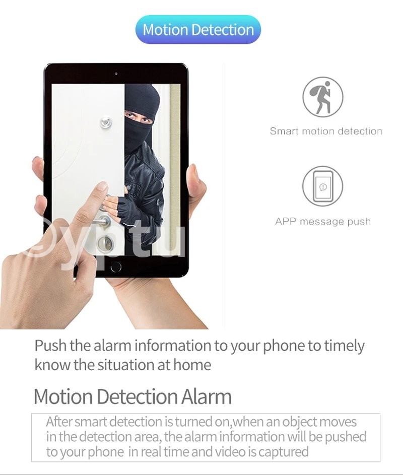 The wirless security camera will send instant movement alert to JIENUO phone app.and record in the sd card (Sound and video) . Automatically take photos and send emails,With the full alerts, we will hardly miss any improtant events going on or happened.