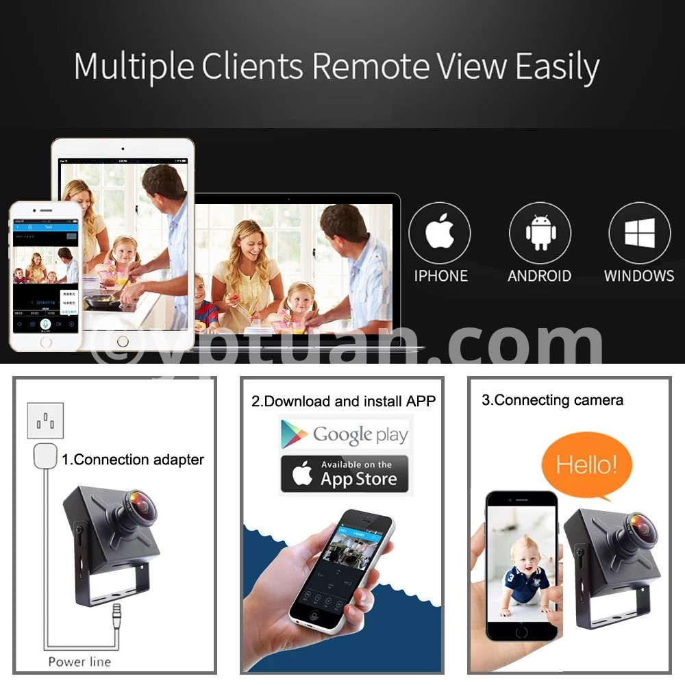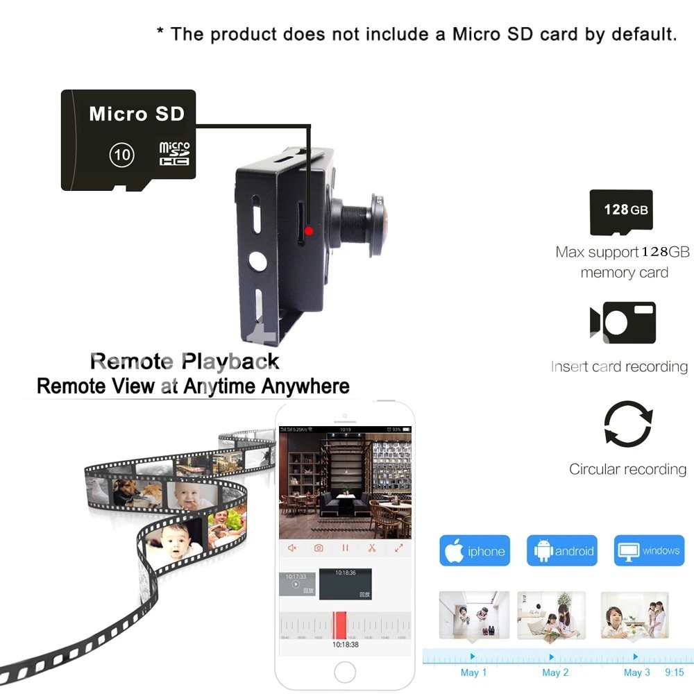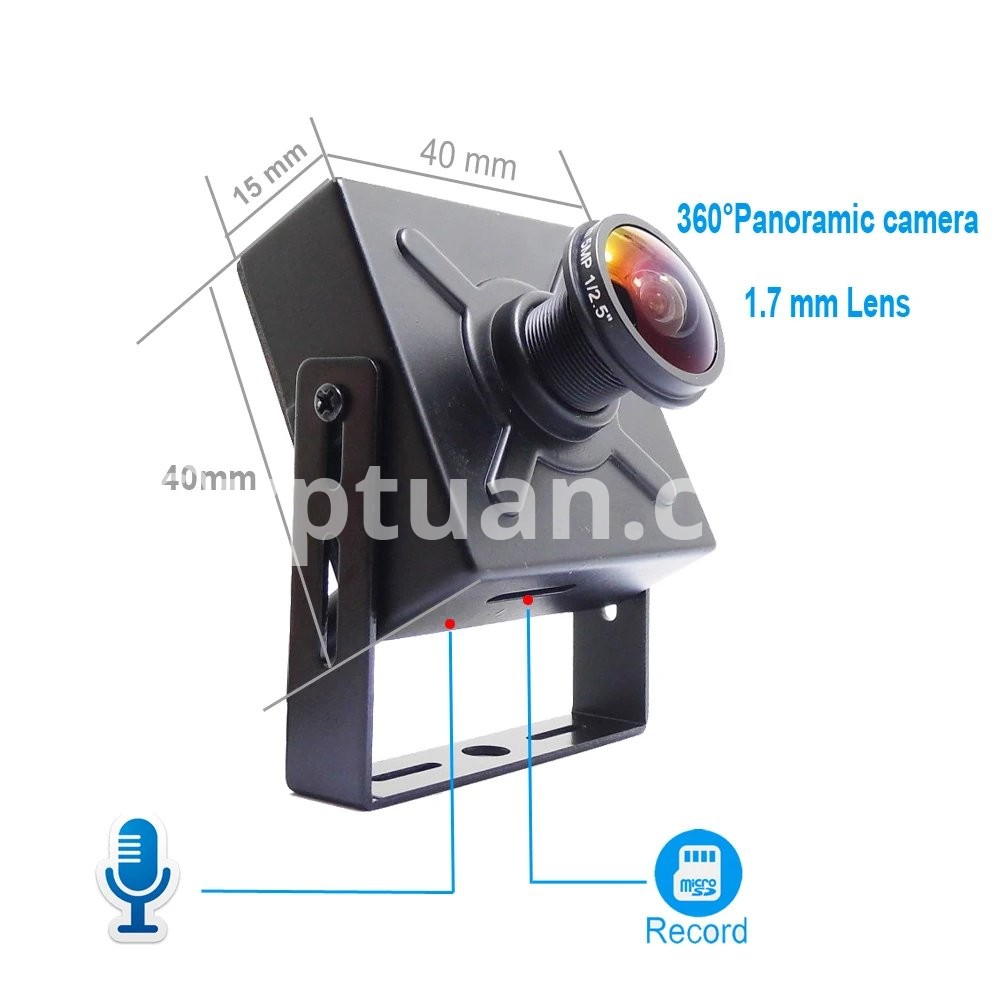 Smaller size: 4cm * 4cm * 1.5cm 1.7mm panoramic fisheye lens POE optional Support wired network cable connection Support Micro SD recording(Maximum support 128G, the product does not include Micro SD card by default) Built-in microphone Support HD resolution ( 2560*1920 / 2560*1440 ) Support computer, Android phone, iPhone connection