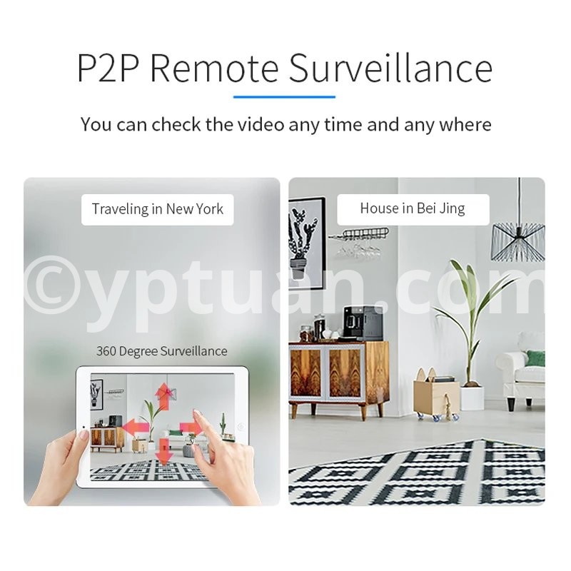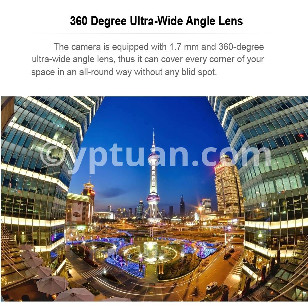 The camera is equipped with 1.7 mm and 360-degree ultra-wide angle lens, thus it can cover every corner of your space in an all-round way without any blid spot
