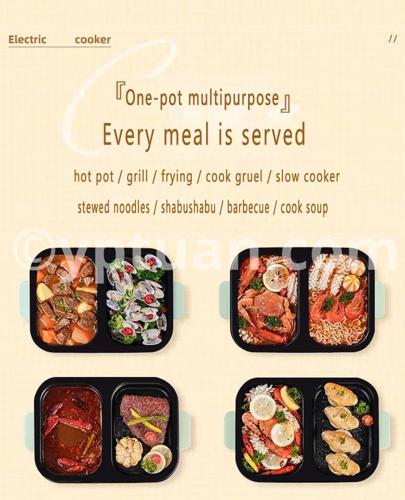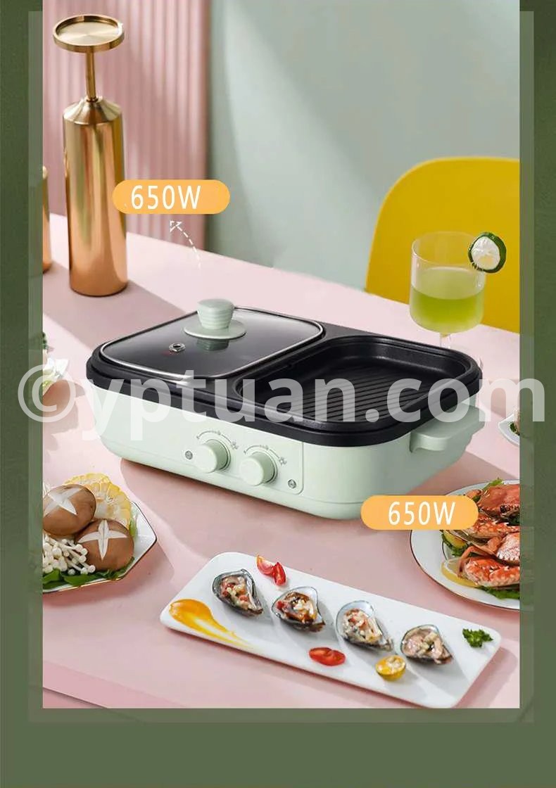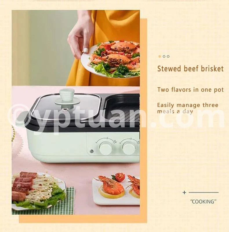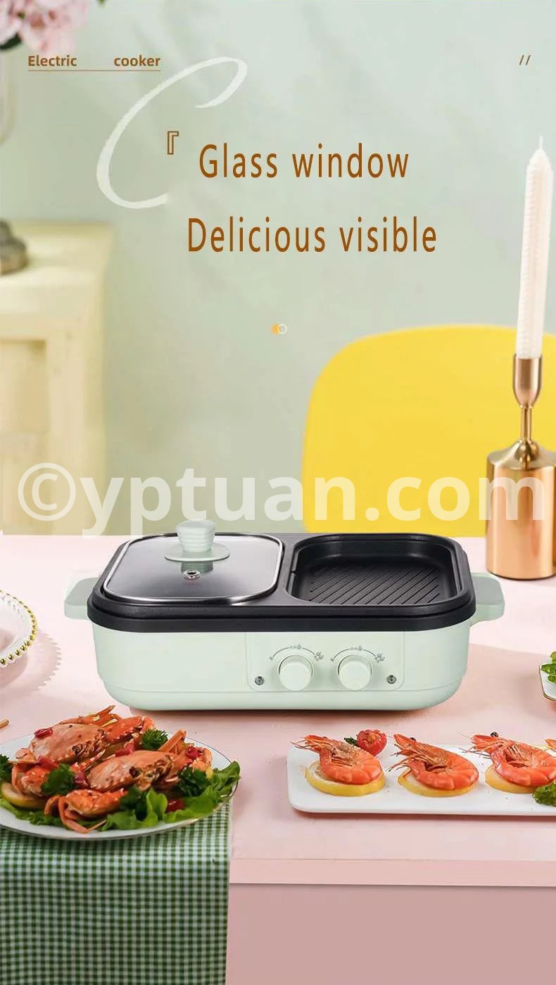 2 in 1 Non-Stick Shabu Pot and Griddle Multi Cookers BBQ Shabu Shabu Pot with Grill, Steaks, Ramen& Noodles,electric cooking pot