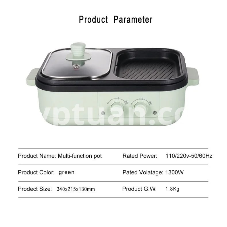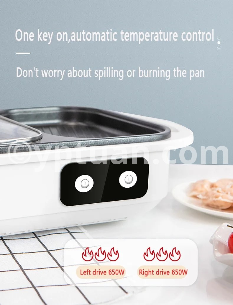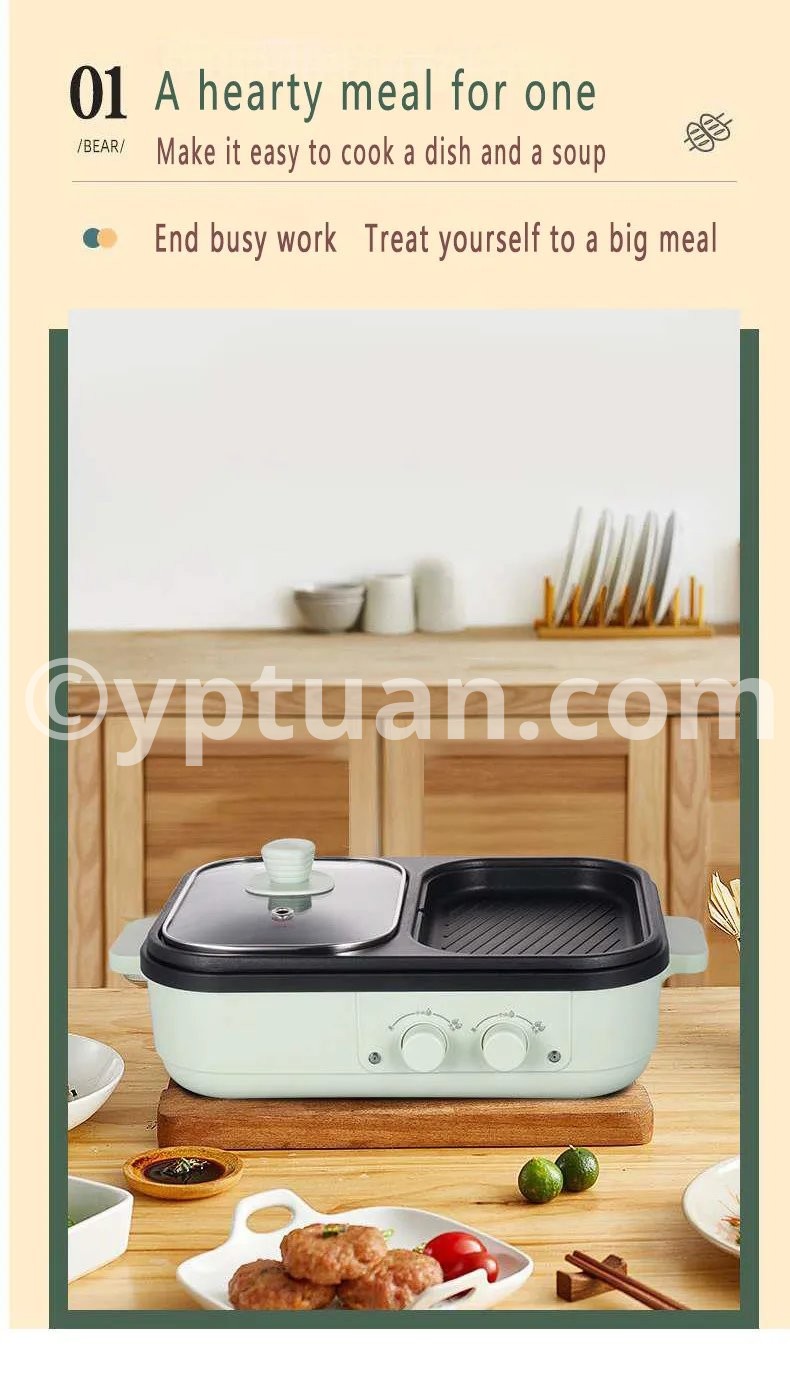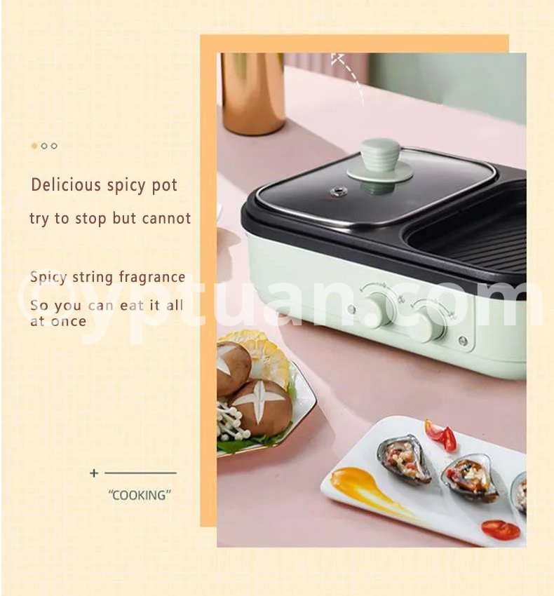 2 in 1 Non-Stick Shabu Pot and Griddle Multi Cookers BBQ Shabu Shabu Pot with Grill, Steaks, Ramen& Noodles,electric cooking pot