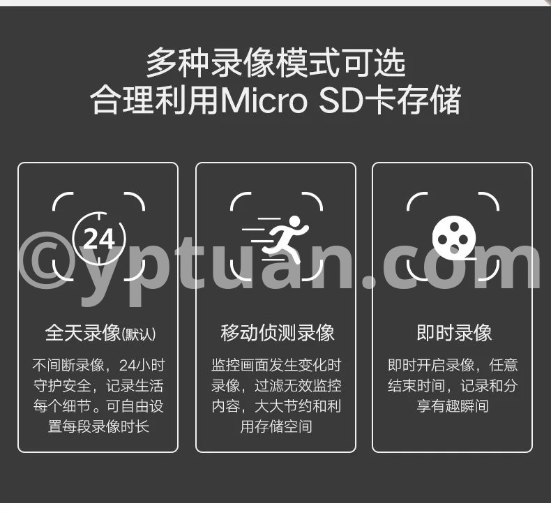 Multiple recording modes can be selected,reasonable use of Micro SD card storage All-day recording mode (default), motion detection recording, real-time recording