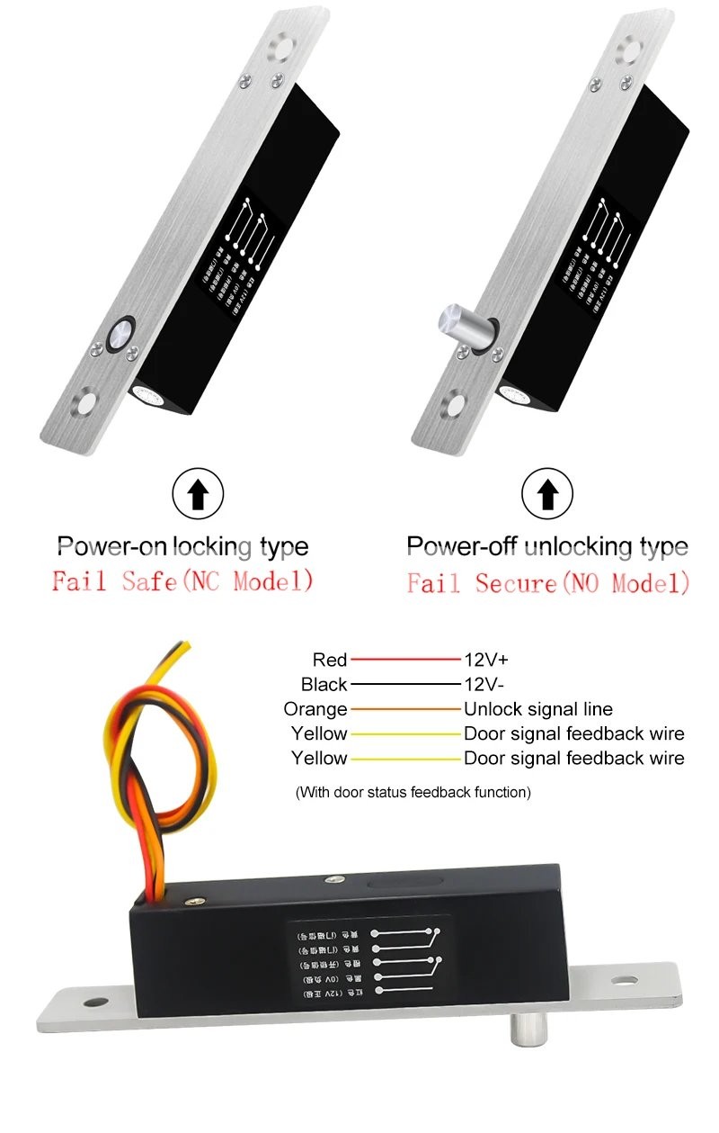 2. Secure mode: The door will lock while supplied with power, or without power for your choice