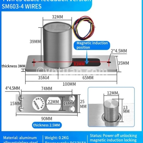 ● Dimension:120*18*23mm● Unlock method: with power to unlock, without power to unlock optional