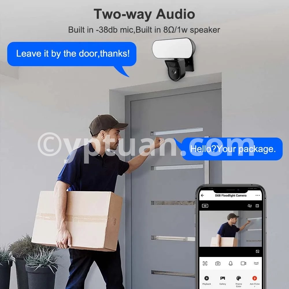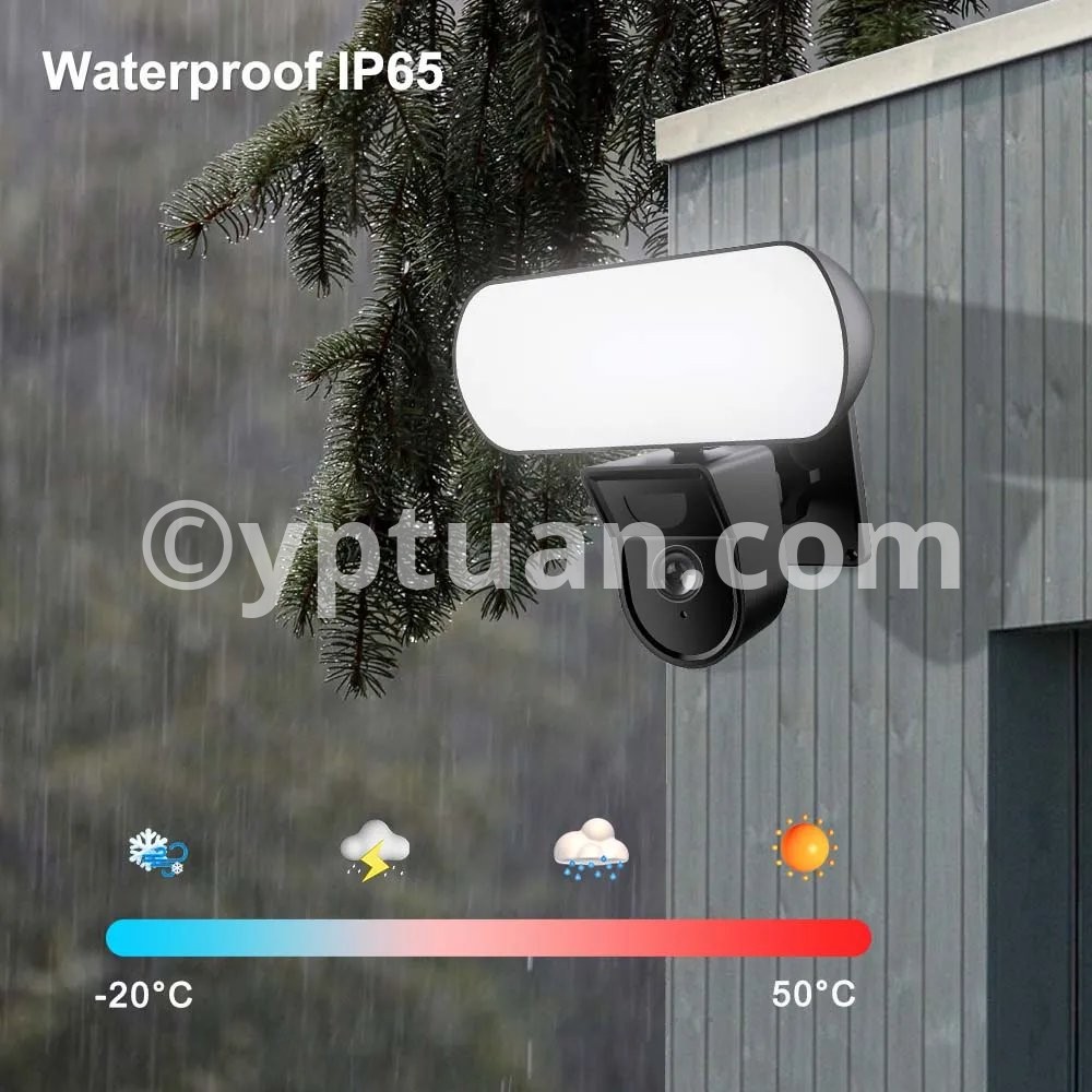 * With 10W warm LED light,, 800-1000LM luminous flux, 120º luminous angle and 5 meters radius luminous distance, this floodlight camera will bring a greater deterrent to thieves.