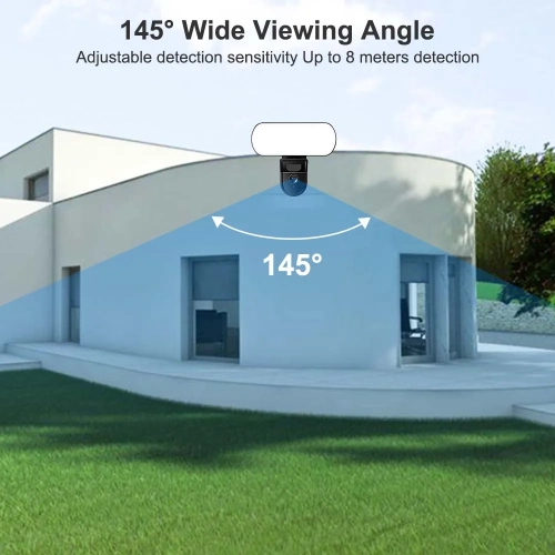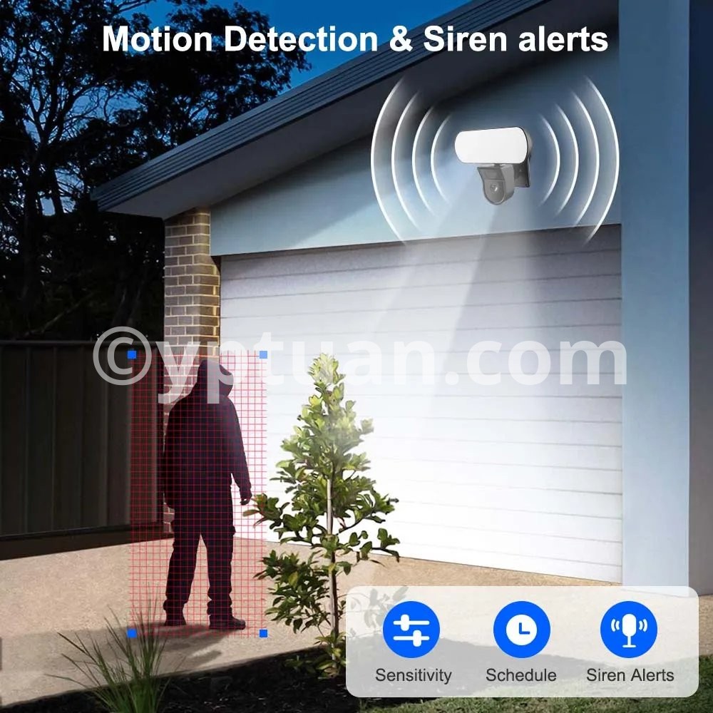 * Light up the Dark with Floodlights This security camera is equipped with 1pcs ultra-bright LED floodlights, which allow you to gain a clear, lit-up view of the area. The 145°wide-angle PIR sensor can identify human movements trigger the LED lights.