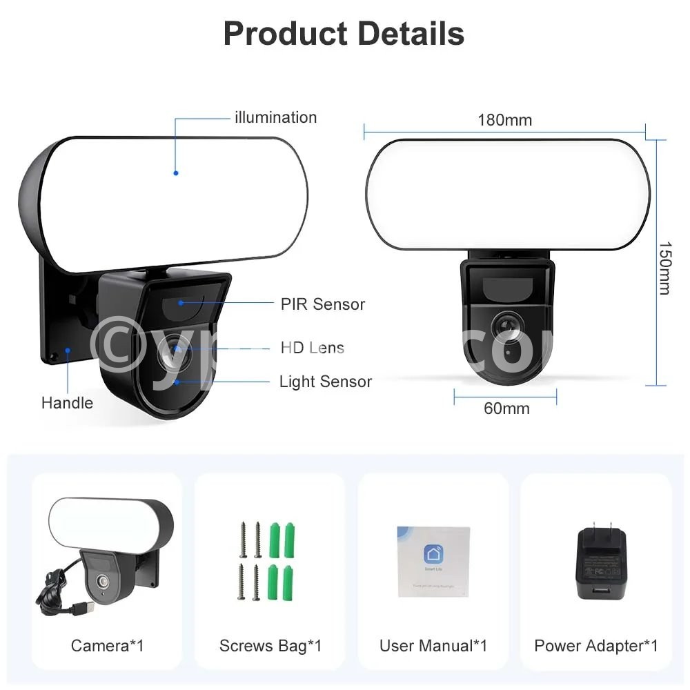 * Not only a security camera, but also a illumination LED lamp. HD camera lighting meets the needs of monitoring and lighting at the same time, suitable foor the courtyards, independent villas and open spaces.
