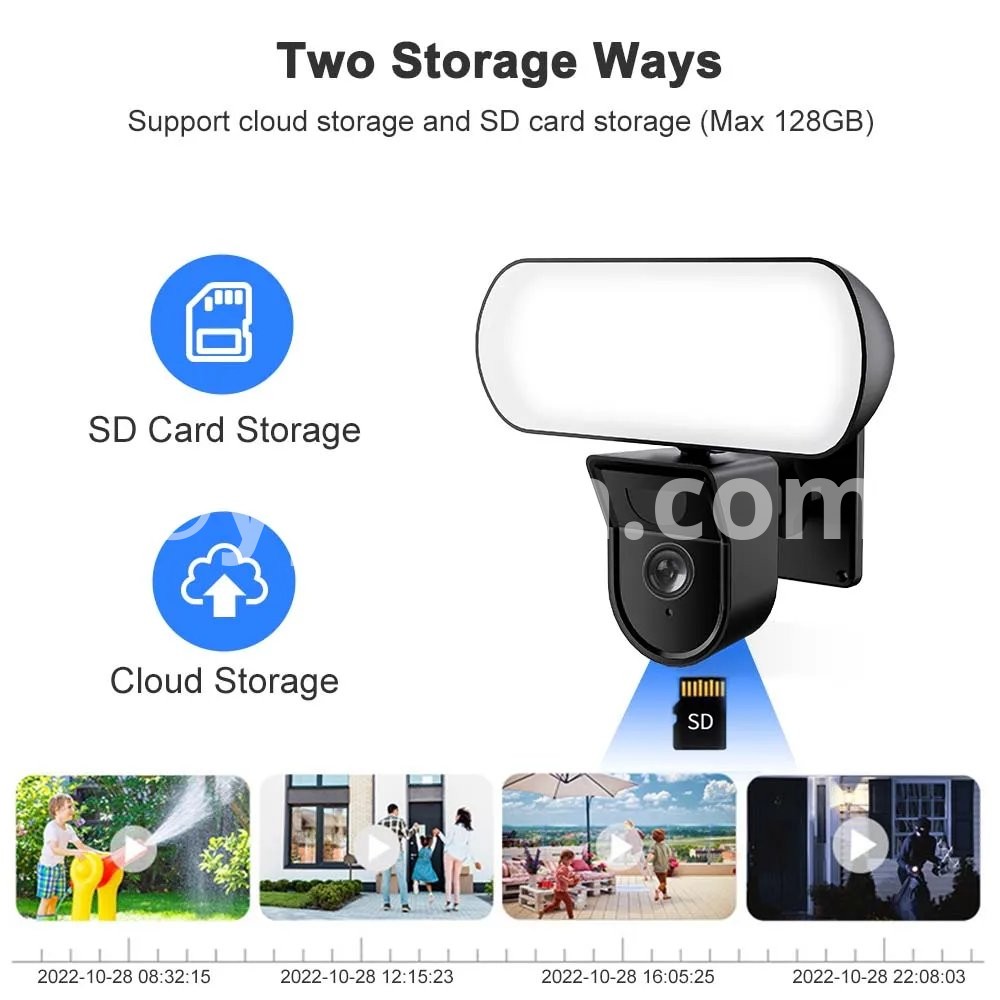 *Built-in SD card slot, thie video surveillance camera support up to 128g Micro SD card (SD card not includeed) *The PTZ camera also supports encrypted secured cloud storage, protects recording in cloud against any footage loss result from damage such as theft of the security camera.