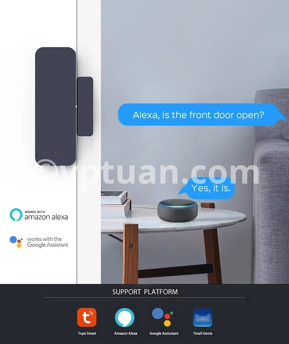 1. Instant Notification Push instant notification to your phone immediately when door or window is opened or closed. Keeping you informed all the time. 2. Alarm Alert Whenever the sensor is triggered to open/close, it will send alarm to alert you that someone opens your door or window. 3. Alarm Recording Support checking open / close records and battery level on the app. Never worry about missing any important moments or running out of battery. 4. Device Share Select "Home Management" in the "Me" page to share your added sensors with family members. so that they can also monitor the status of doors/windows. 5. Low Voltage Remind When battery level is low, it will automatically remind you to change batteries, never worry about running out of battery. 6. Works with amazon Alexa and Google Assistant.