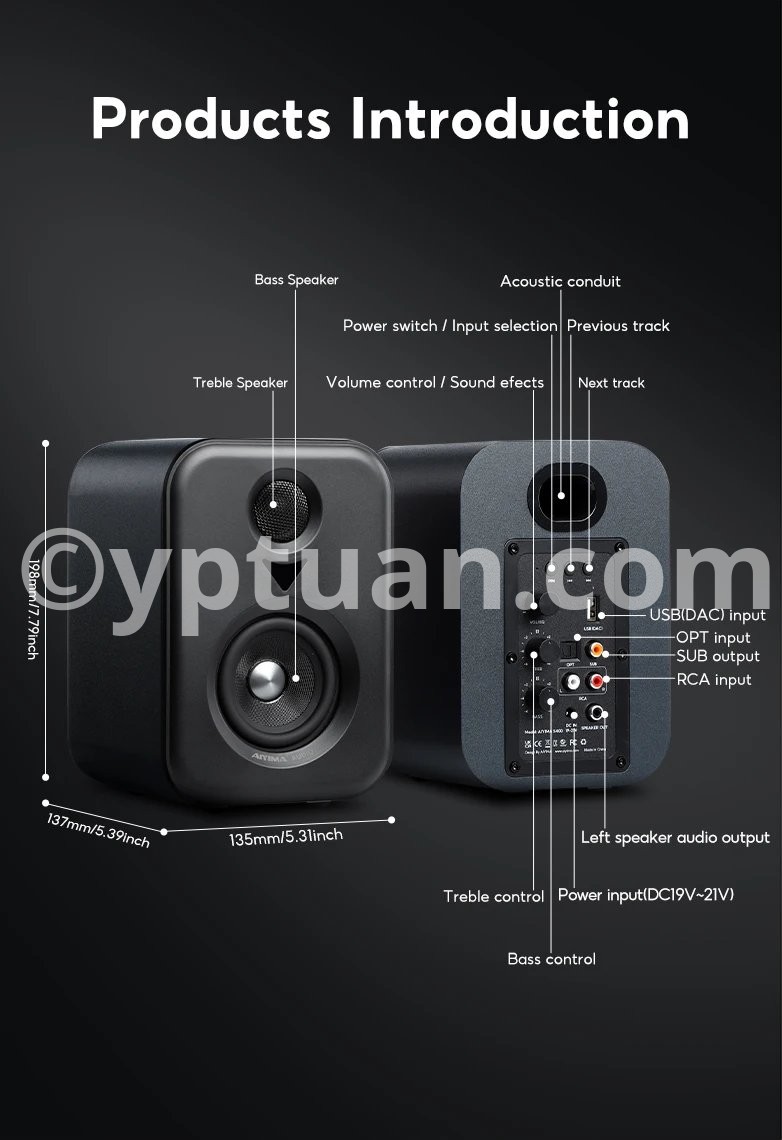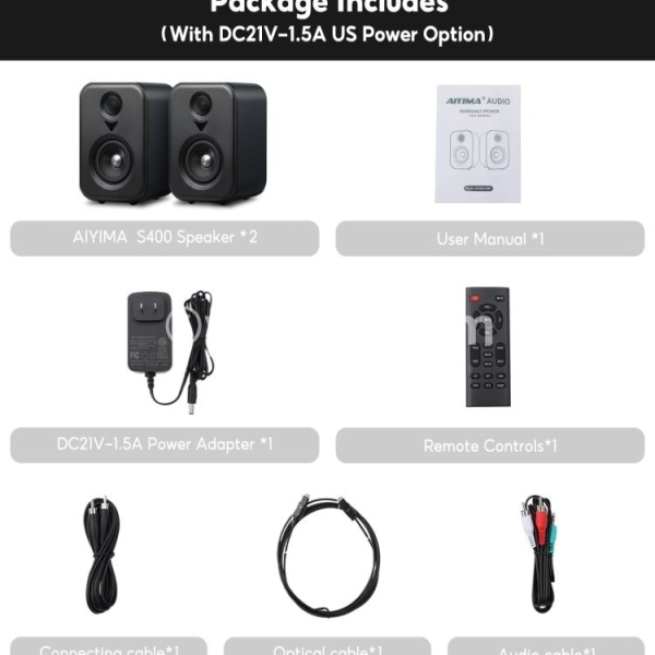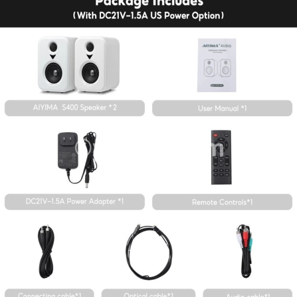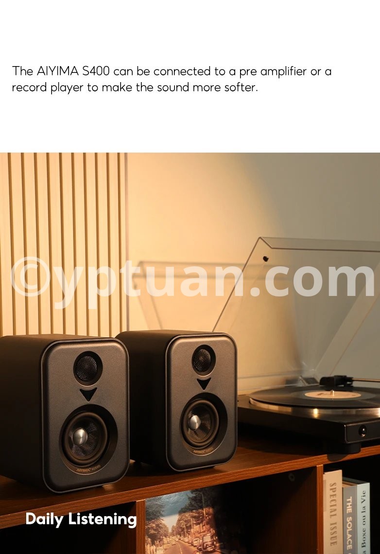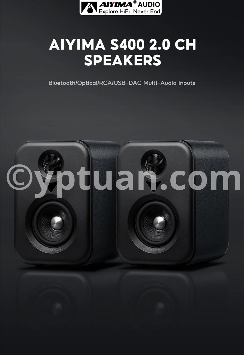 AIYIMA S400 Upgrade Active Speakers Wooden Studio Monitor Bluetooth USB OPT RCA Inputs Subwoofer Output Record Player Speaker