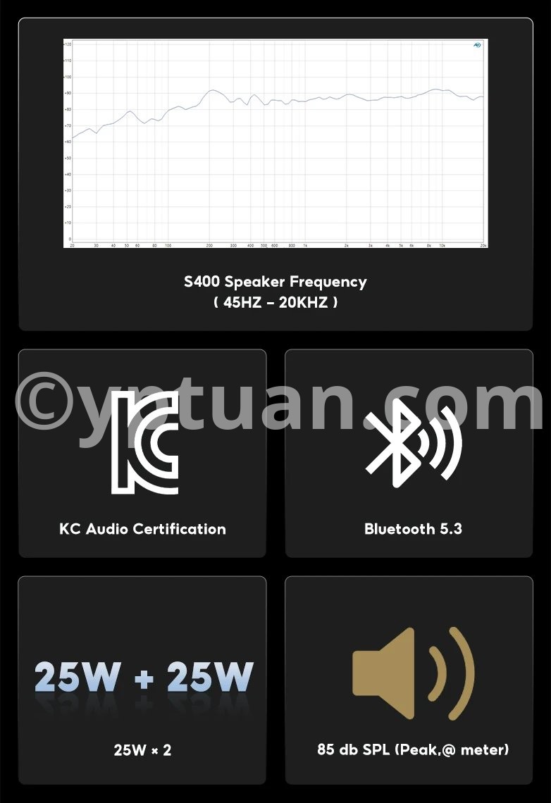 Themidandlow-frequencyspeakersofthes400areequippedwith3-inchfiberglasscones.Thefeaturesofthisspeakerincludegoodrigidityandresistancetodeformation