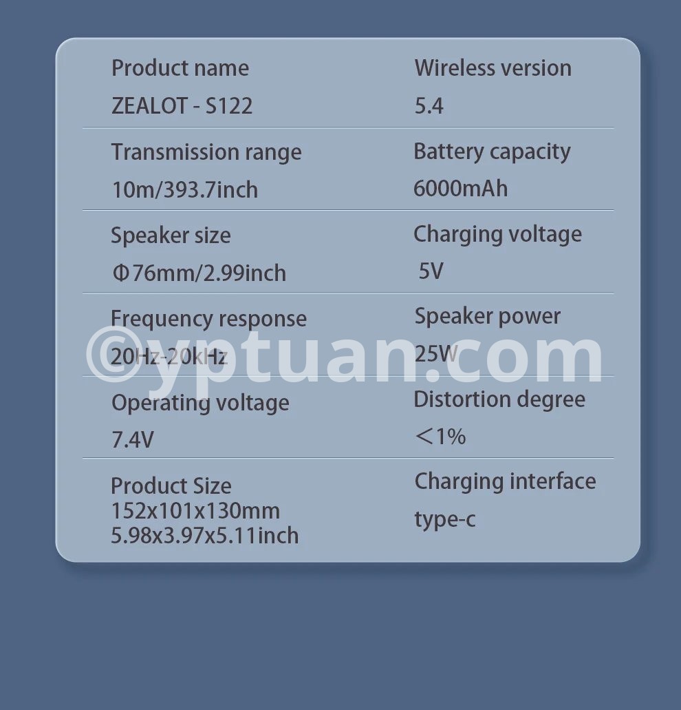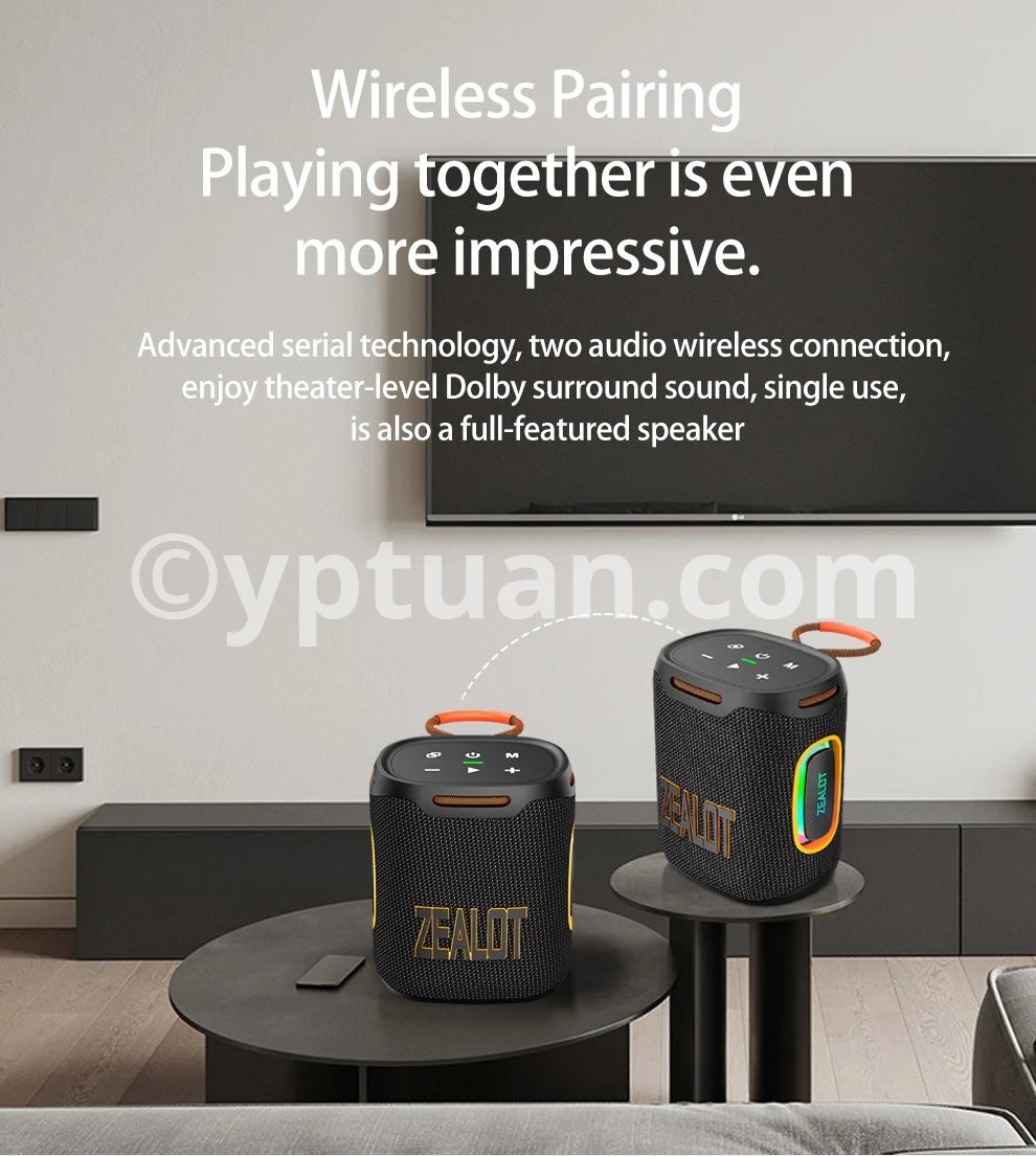 2025 New Arrival Zealot S122 25W Wireless Speaker, Hifi Sound quality, Bass Boost,Dual Pairing,6000mAh Battery.