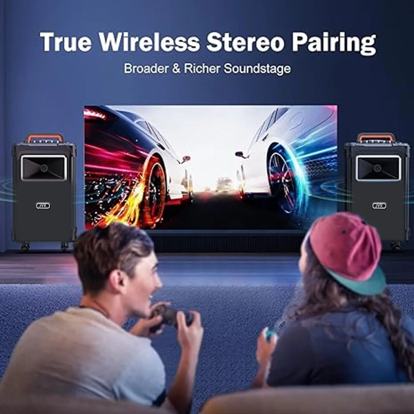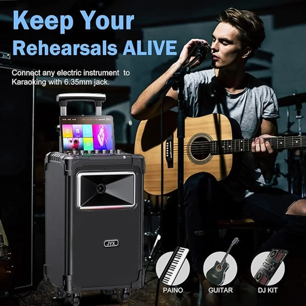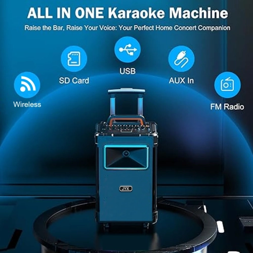 Jyx An20 Karaoke Machine, 10inch (about 25.4cm) Bass Speaker Large Bluetooth Karaoke Speaker with 2 Wireless Microphones, Party Lights, Supports Vocal Cutting, Tws/Bluetooth/Rec/Usb/Tf/Aux