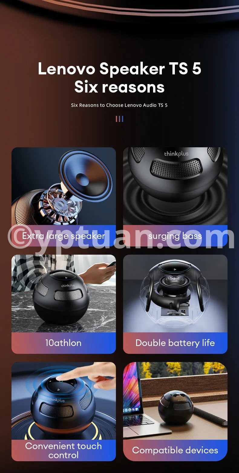 Choice Original Lenovo TS5 Bluetooth V5.3 Speaker Outdoor Long Endurance Loudspeaker Subwoofer Portable Surround Sound Player