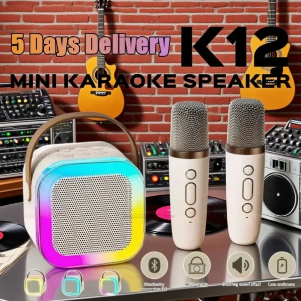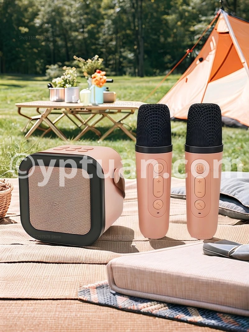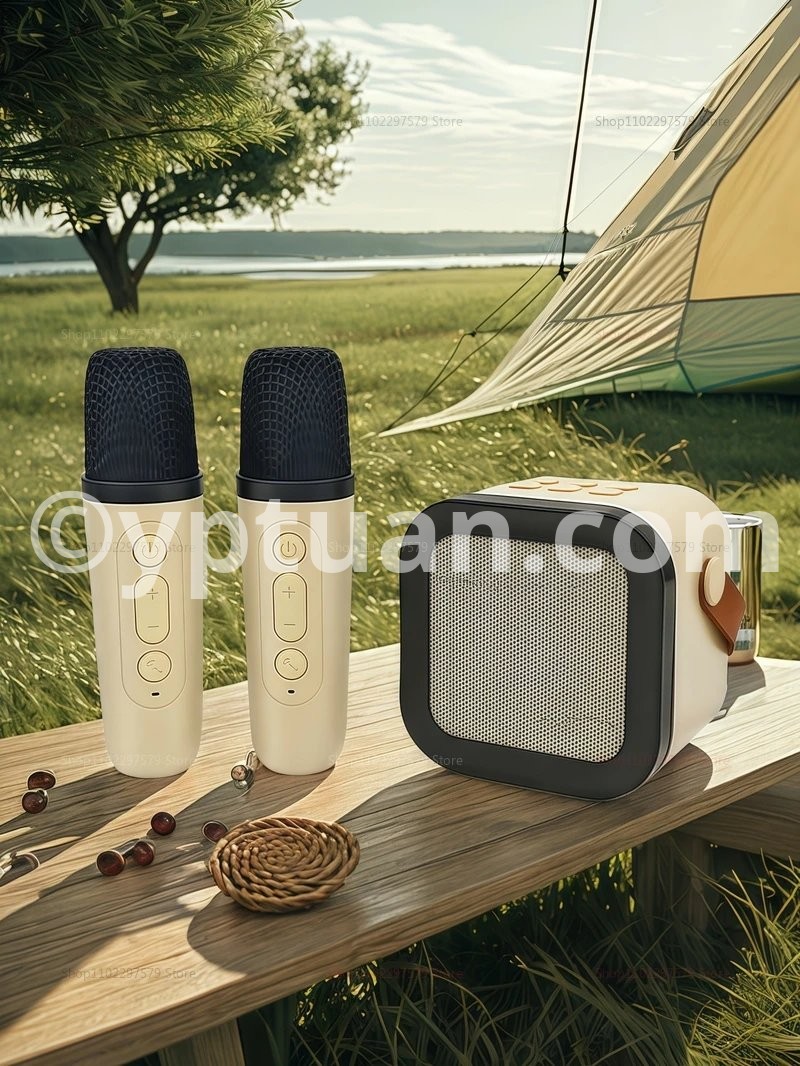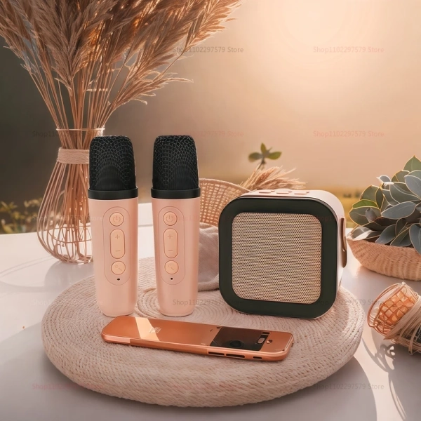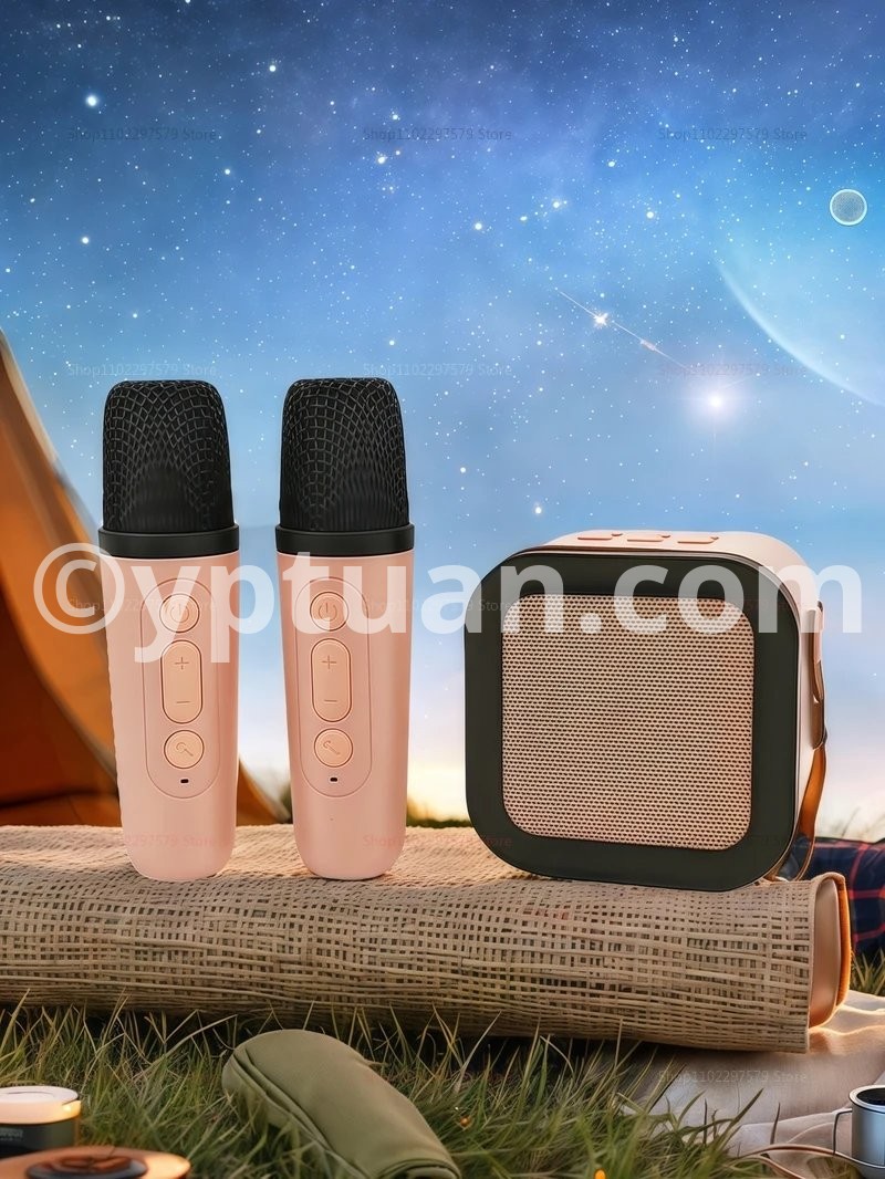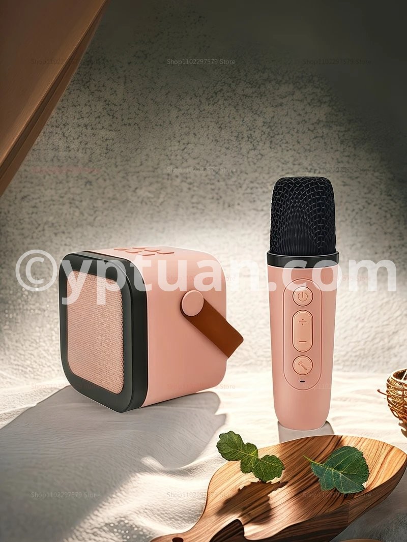 Premium Portable Bluetooth Karaoke Speaker with Dual Microphones & RGB Light Effect | 5W Stereo Sound, Deep Bass, Multiple Input Modes, Suitable for Kids, Parties, KTV, Family Gatherings, Travel & Events Experience professional-grade audio quality with this versatile 4-in-1 portable Bluetooth karaoke speaker system, perfect for both kids and adults. Equipped with dual 5W stereo speakers and a powerful subwoofer, it delivers crystal-clear sound, rich stereo effects, and deep bass — ideal for singing, enjoying music, or hosting lively parties wherever you go. Key Features: • Multi-Function Karaoke System: Combines high-fidelity sound with wireless mini microphones—supporting dual microphones for Duet singing. Easy one-button operation, lightweight design with premium leather handle for effortless portability. Perfect for KTV nights, dance parties, family gatherings, or travel. • Dynamic RGB Atmosphere Lighting: Features 5 adjustable LED light effects synchronized with your music—short press to switch effects, long press to turn off. Enhance your party ambiance with vibrant colorful lighting that elevates the visual experience. • Wireless Connectivity & Wide Compatibility: Supports Bluetooth 5.1 with a stable wireless transmission range of up to 32 feet (~10 meters). Compatible with most smartphones, tablets, laptops, and other Bluetooth-enabled devices. Also supports USB, AUX input, and TF card for versatile connection options. • Superior KTV-Grade Sound & Vocal Enhancement: Dual noise reduction microphones, advanced MP3 audio decoding technology, and a built-in 4-core audio processing chip eliminate distortion, feedback, and enhance vocal clarity. Enjoy professional karaoke effects with echo and vocal boost features. • Long-Lasting Battery & Convenient Design: Built-in 2000mAh rechargeable lithium-ion battery offers 4-5 hours of continuous playback at maximum volume without lighting effects. Equipped with a user-friendly indicator light—blue for pairing, red while charging, and off when fully charged. Compact size (approx. 95mm x 90mm x 65mm) and lightweight (about 600g), ideal for home, outdoor, or travel use. Additional Highlights: - Multiple Input Modes: USB, AUX, TF card, and Bluetooth enable seamless connectivity. - Multiple Sound Modes: Stereo and extra bass modes enhance your listening experience. - Support for Karaoke, Music Playback, Speeches, and More: Perfect for parties, family karaoke, outdoor events, classrooms, and weddings. - Stylish, Durable ABS Cabinet Material — designed for longevity and aesthetic appeal. - Portable & Easy to Use: Quick pairing, simple controls for play, pause, volume, and light effects adjustments make it user-friendly. - Gift-Ready Packaging: Comes in an elegant box—an excellent gift for friends and family. Technical Specifications: - Output Power: 5W x 2 stereo speakers • Frequency Response: 200Hz–8kHz • Signal-to-Noise Ratio: ≥75dB • Charging: Type-C port (5V/1A) • Playtime: 4-5 hours (lights off), >3 hours (lights on) • Standby: 12 hours • Dimensions: 95 * 90 * 65mm • Weight: Approx. 600g • Certification: CE Ideal For: - Kids’ Karaoke Parties • Family Karaoke Nights • Outdoor Activities • Travel & Camping • Classroom Activities • Social Gatherings • Event Hosting Note: Due to light effects and monitor differences, actual coloration may vary slightly from images. Please allow 1-2cm measurement deviation. Fully compatible with all popular karaoke and music apps, supporting A2DP/AVRCP protocols for seamless device connection. Upgrade your entertainment experience with this compact, feature-rich Bluetooth karaoke speaker — perfect for creating unforgettable moments anytime, anywhere.