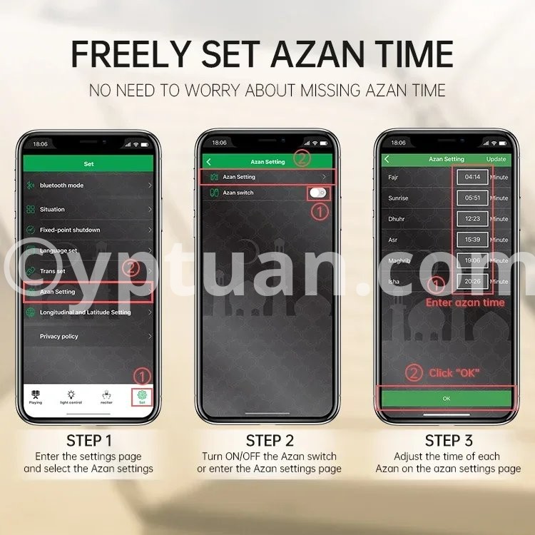 AzanMuslimNightLightQuranPortableWirelessBluetoothSpeakerMp3