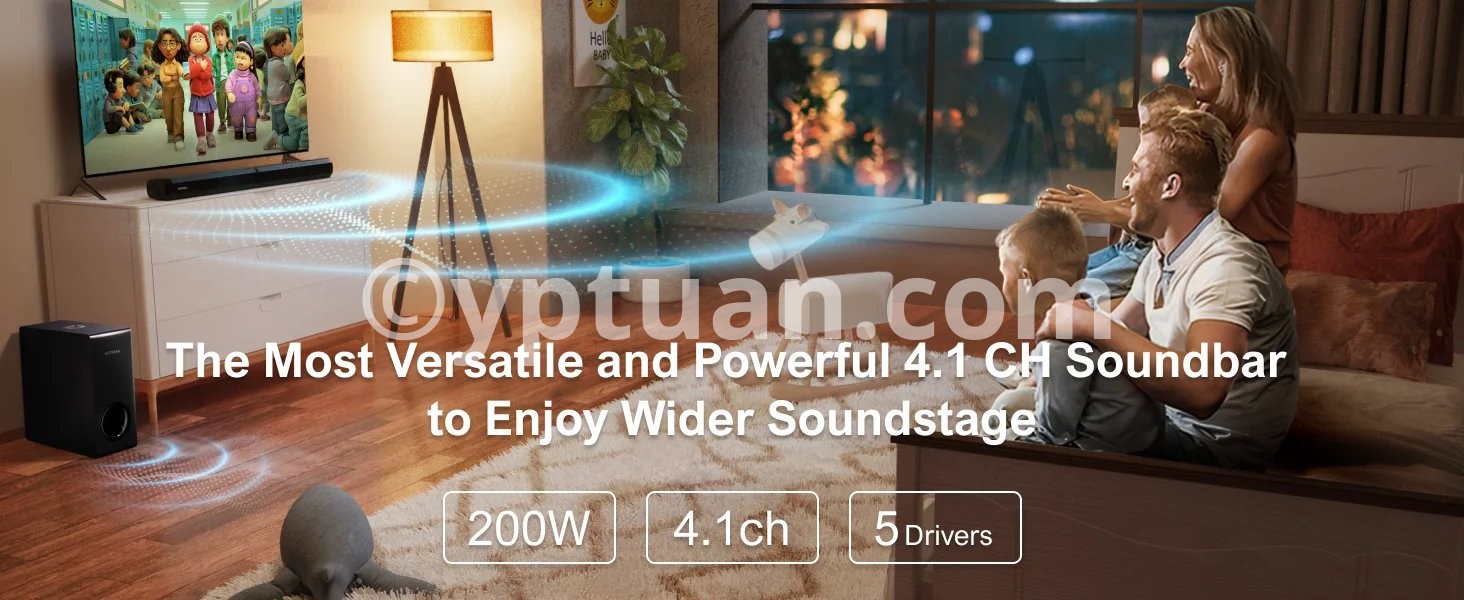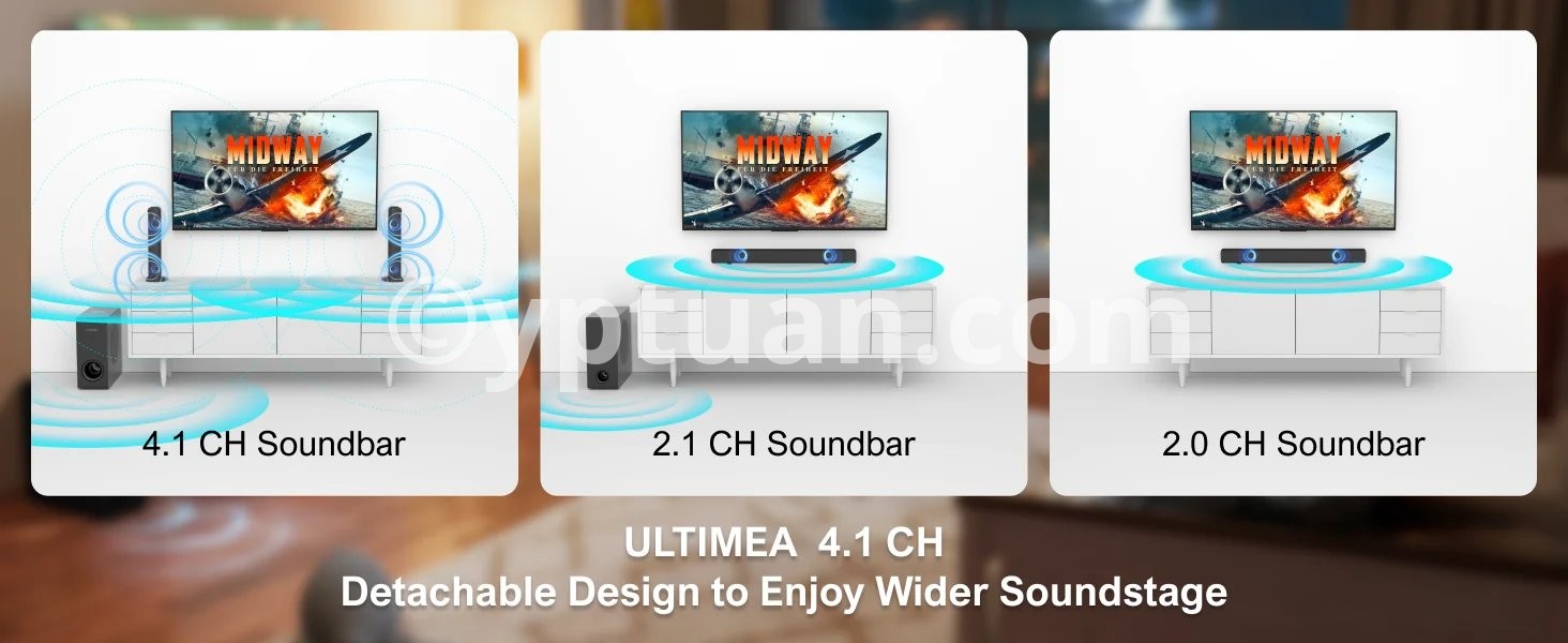 ULTIMEA 200W 4.1ch Soundbar with Subwoofer,2-in-1 Detachable Bluetooth 5.3 Soundbar for Smart TV,Home Theater Bluetooth Speakers
