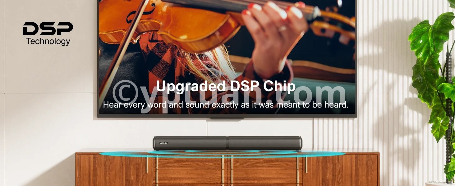 - The soundbar utilizes an upgraded DSP chip to reduce audio static. This ensures that every word and sound is heard exactly as it was intended.
