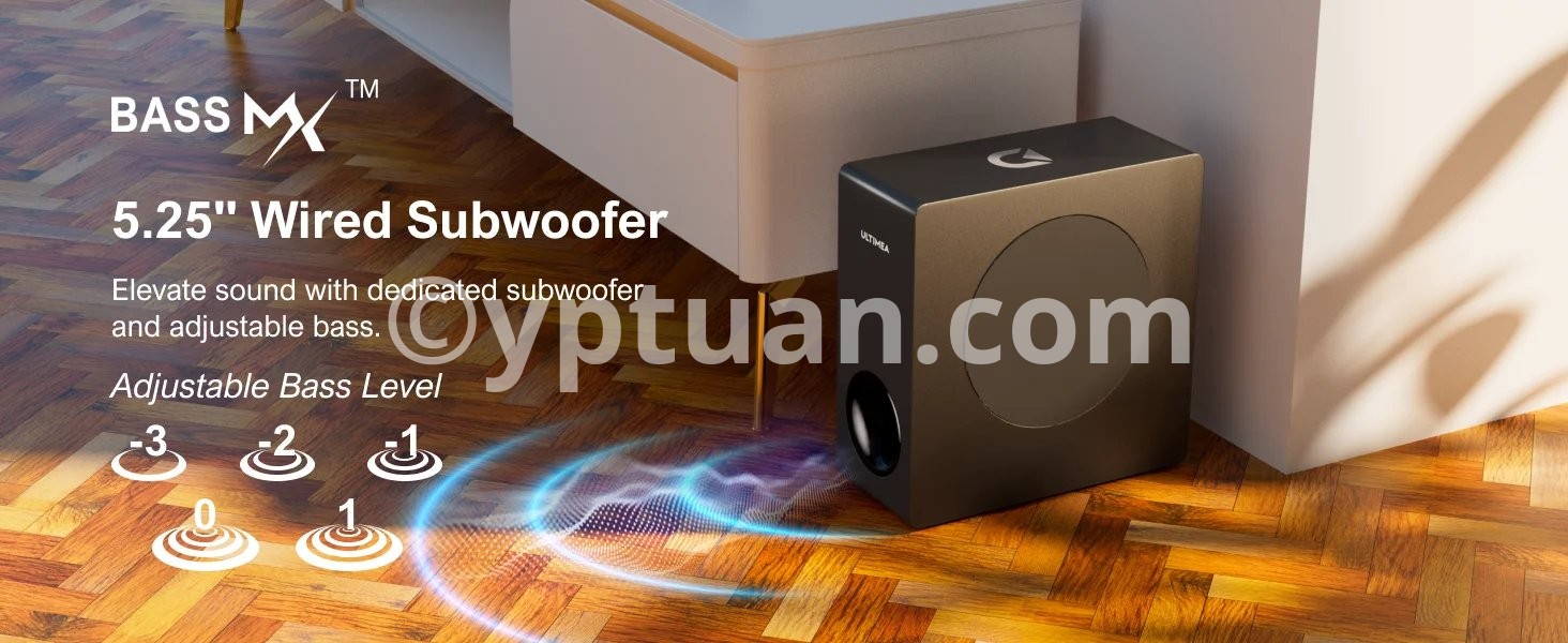 - Elevate your audio with 3 EQ modes designed for music, movies, and games. Ultimea exclusive BassMX technology enriches the low frequencies, enabling adjustable bass for a rumble, pulse-pounding Bass. All of these modes are easily accessible with a touch of a button on the EQ settings.