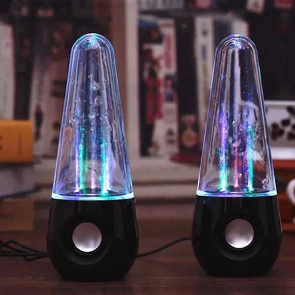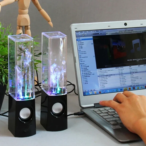 2PCS LED Lights Dancing Water Music Fountain Light Speakers for PC Laptop For Phone Portable Desk Stereo Speaker