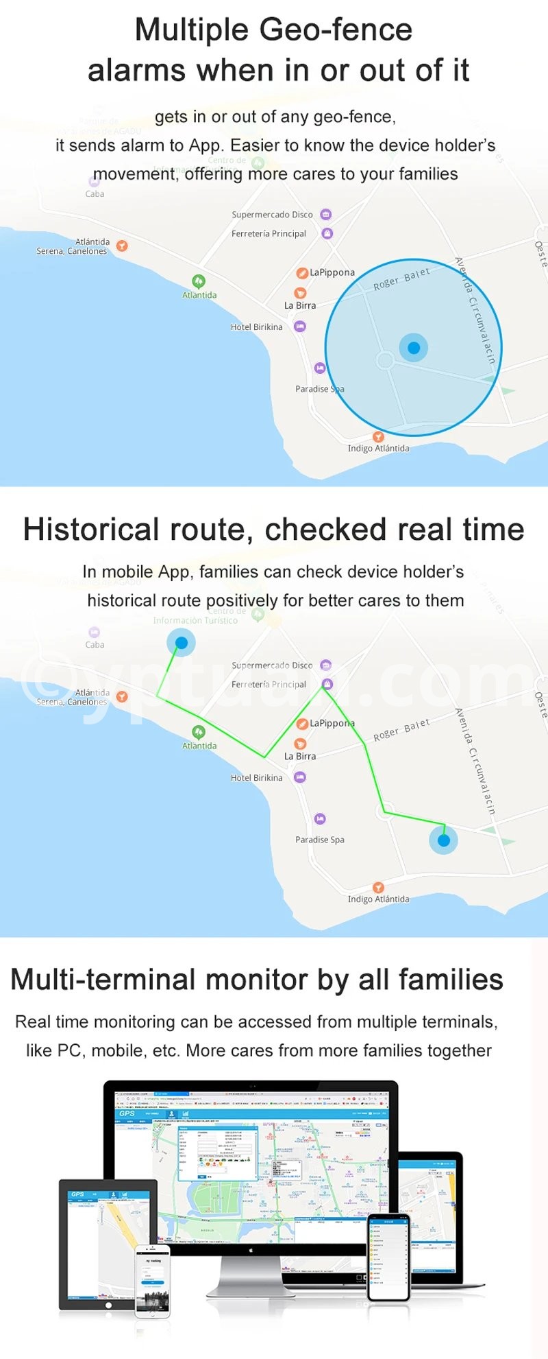 Location: GPS+AGPS+LBS+WIFI location, Geo-fence, Route playback Communication: SOS, 2-way phone call, Voice & Text message, Remote monitor,Video call, VOLTE; Health: Pedometer, Sleep monitor, Blood Oxygen Monitor,Heart Rate Monitor,Sedentary Reminder,Medication reminders; Notification mode: voice, silence Others: No disturbing time, SMS alerts(low-voltage remind/SOS remind), Remote shutdown, Alarm clock, Watch finder.,etc