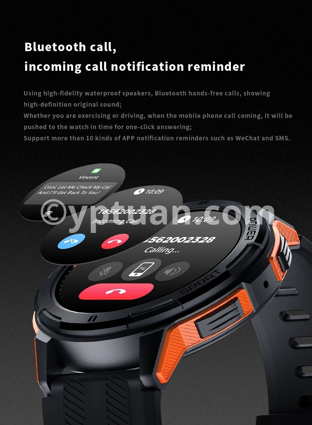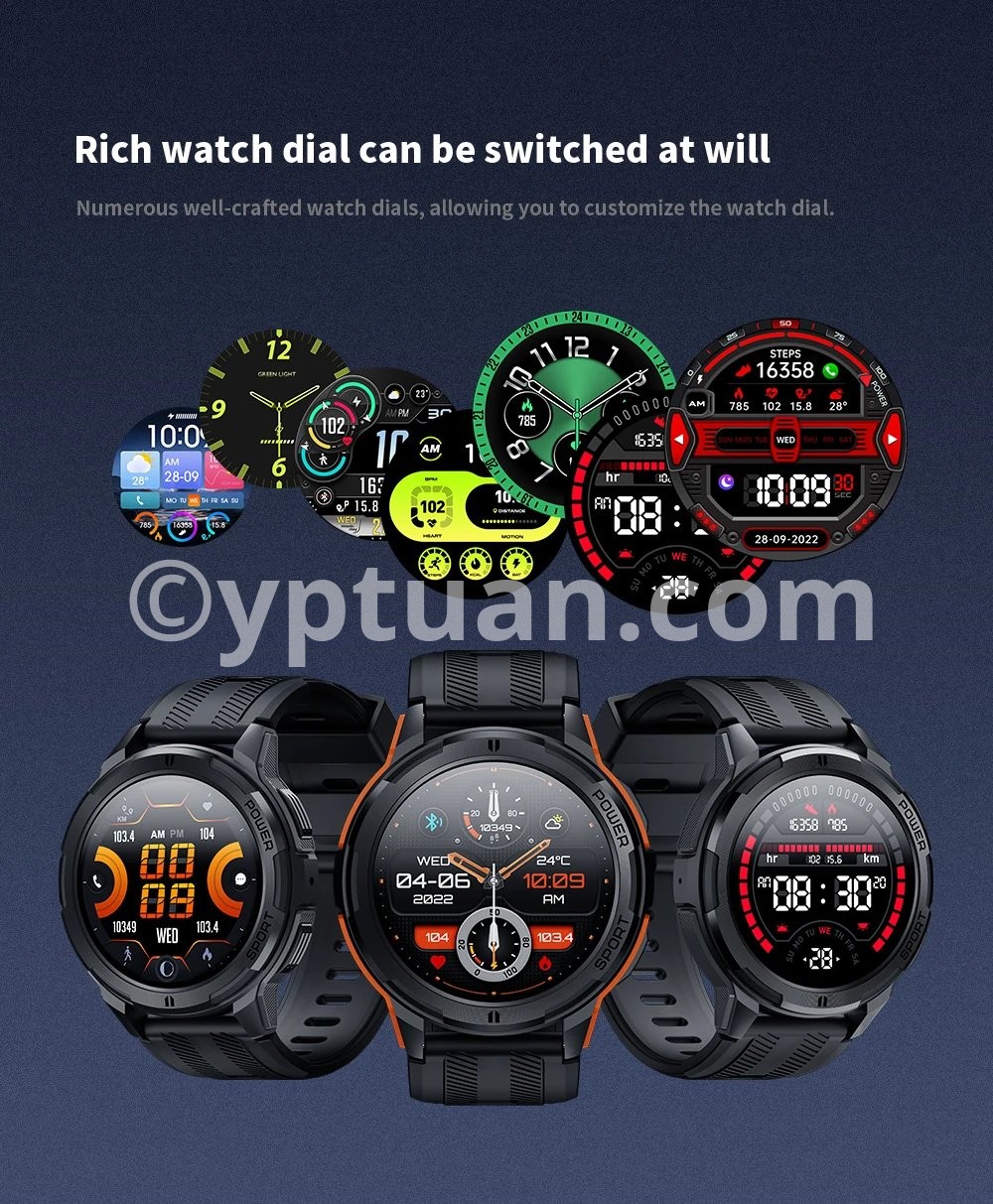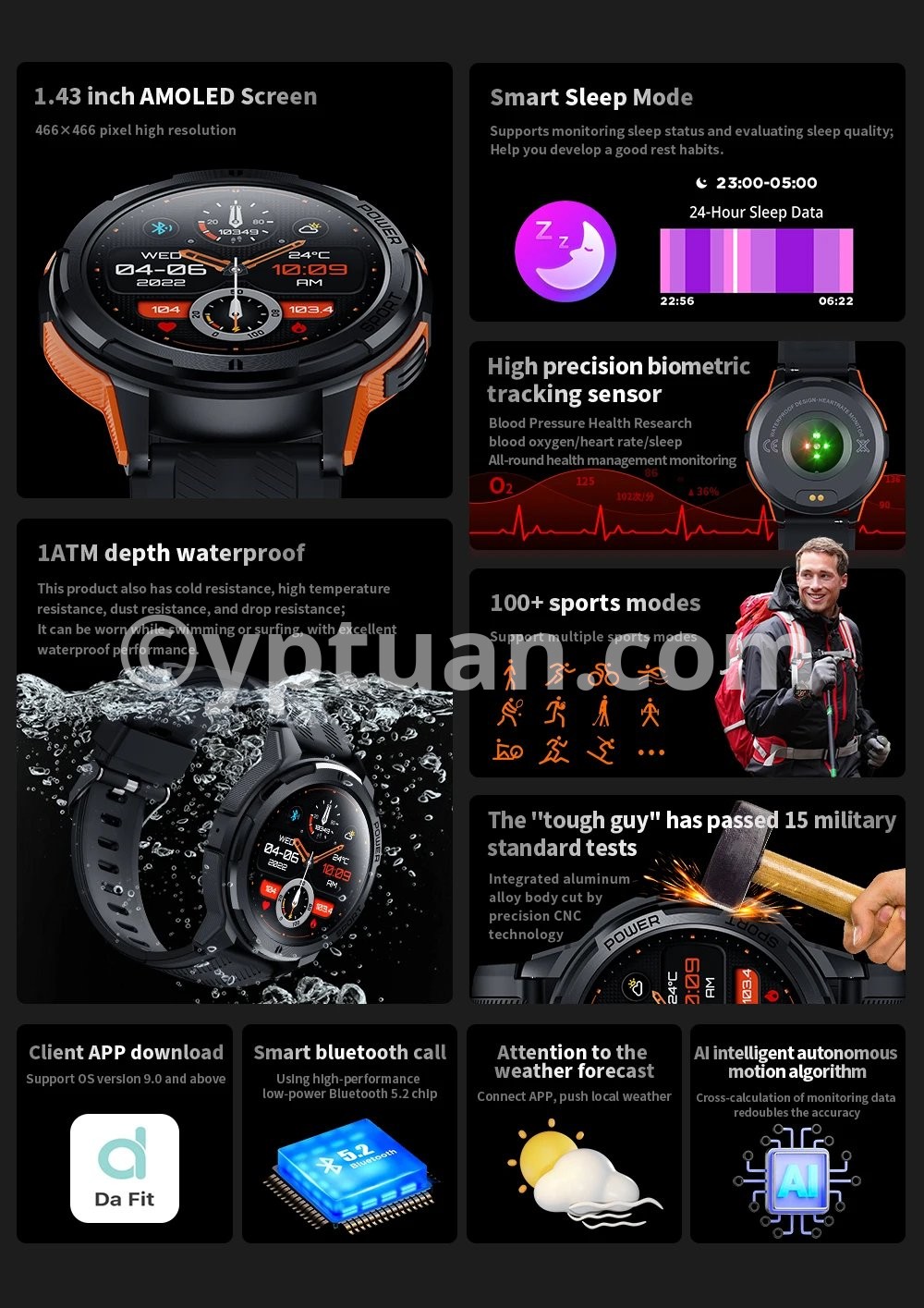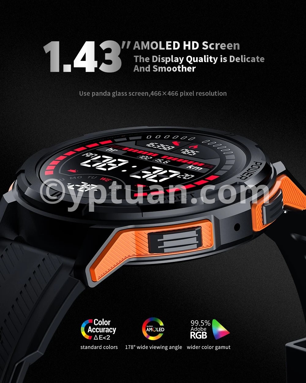 Oukitel Smartwatch BT10 Watch 1.43'' AMOLED Display 410mAh Bluetooth 100+sport modes Phone Calls Health and Fitness Tracking