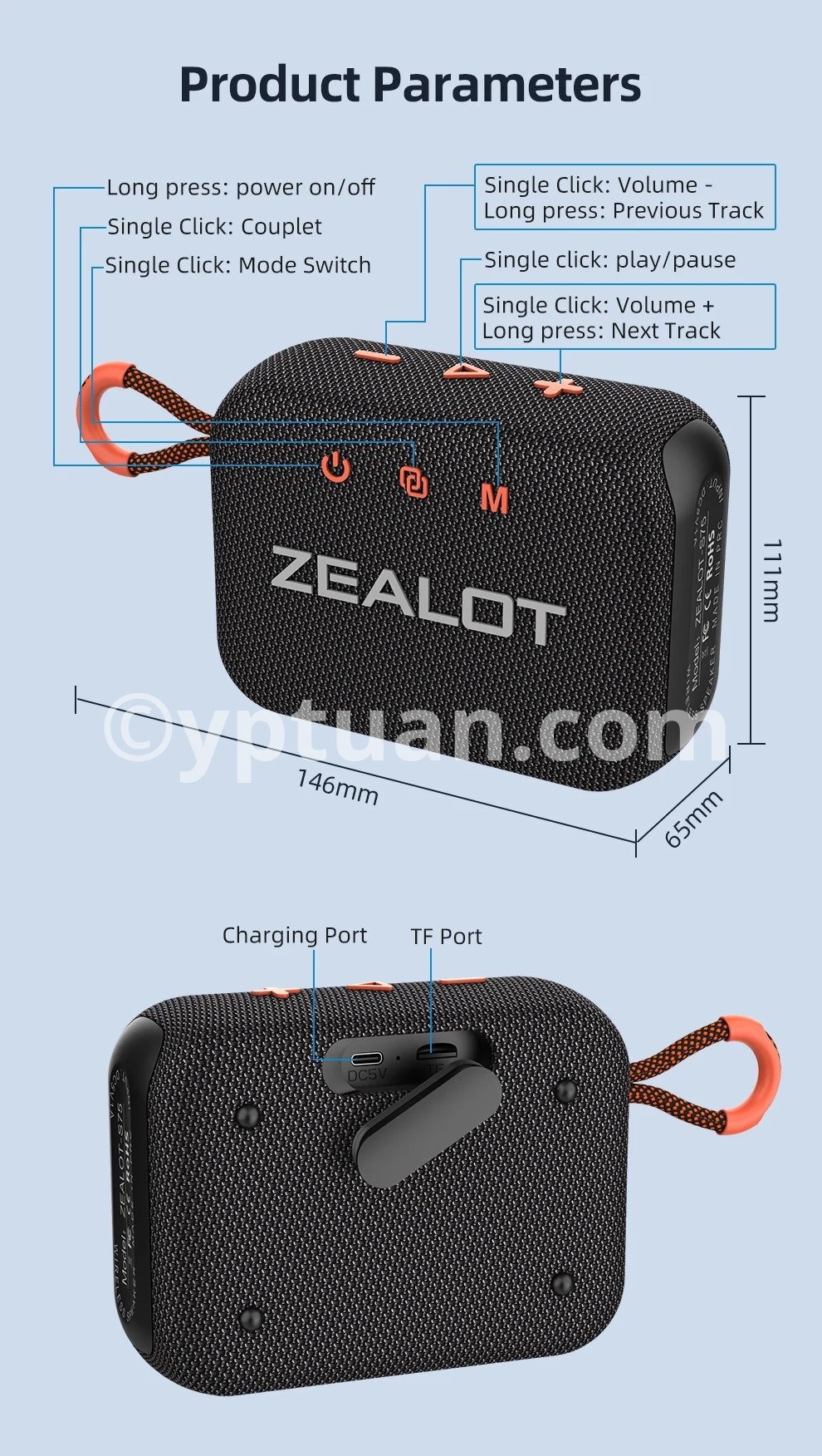 The portable speakers bluetooth wireless is resistant to splash, rain, gentle spray, therefore it is applicable in shower room,by the pool or beach.But do not drop it directly into water.In addition,Zealot speakers bluetooth wireless cover 12-month hassle-free purchase experiences and our lifetime customer services assistance. If you are doing halloween decorations, let music surround by your side, colorful your life.