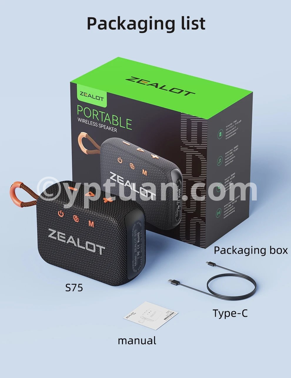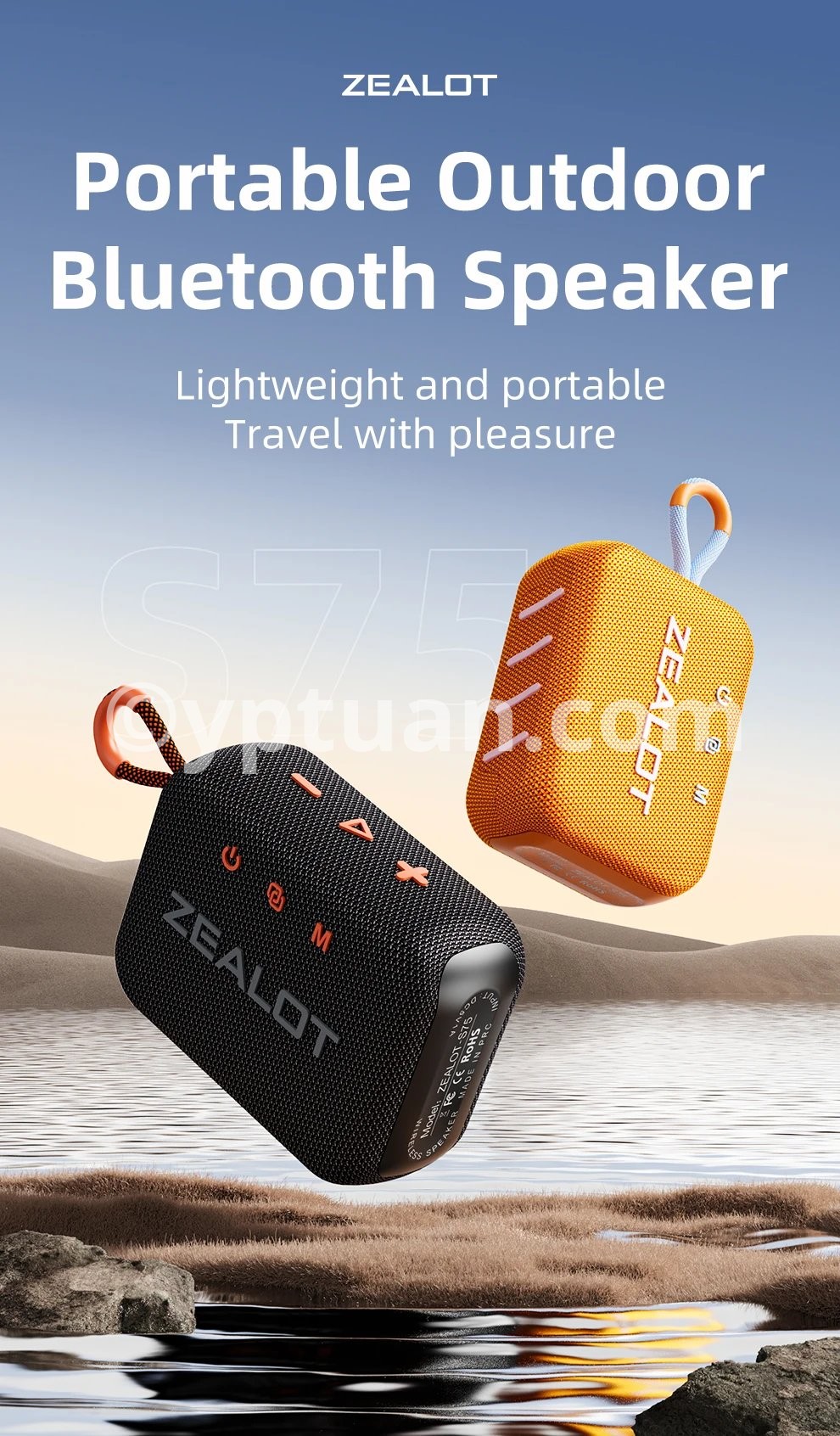 ZEALOT-S75 Outdoor Portable Speaker Dual-Driver Bluetooth Speaker, IPX6 Waterproof, True Wireless Stereo for Outdoor