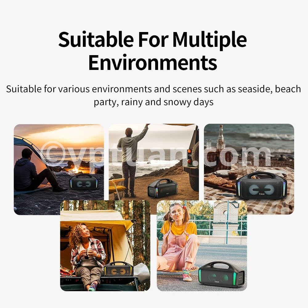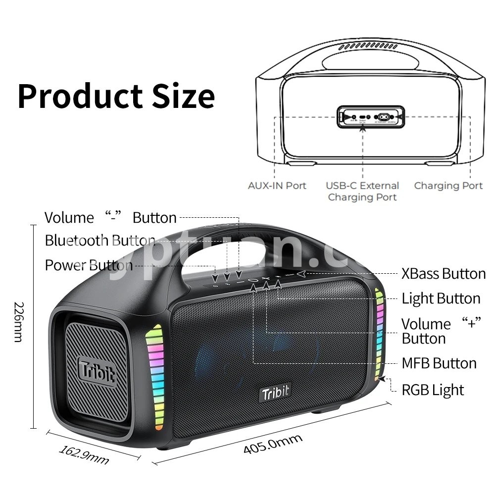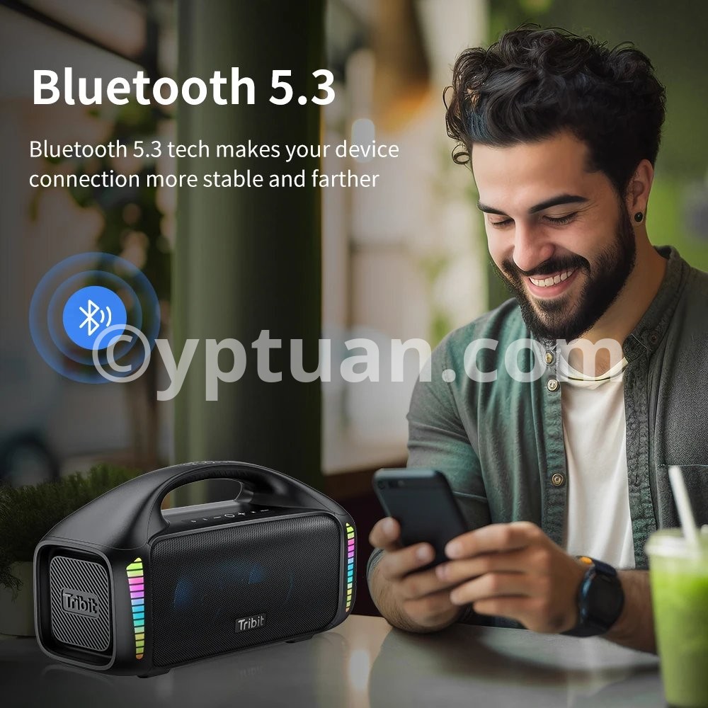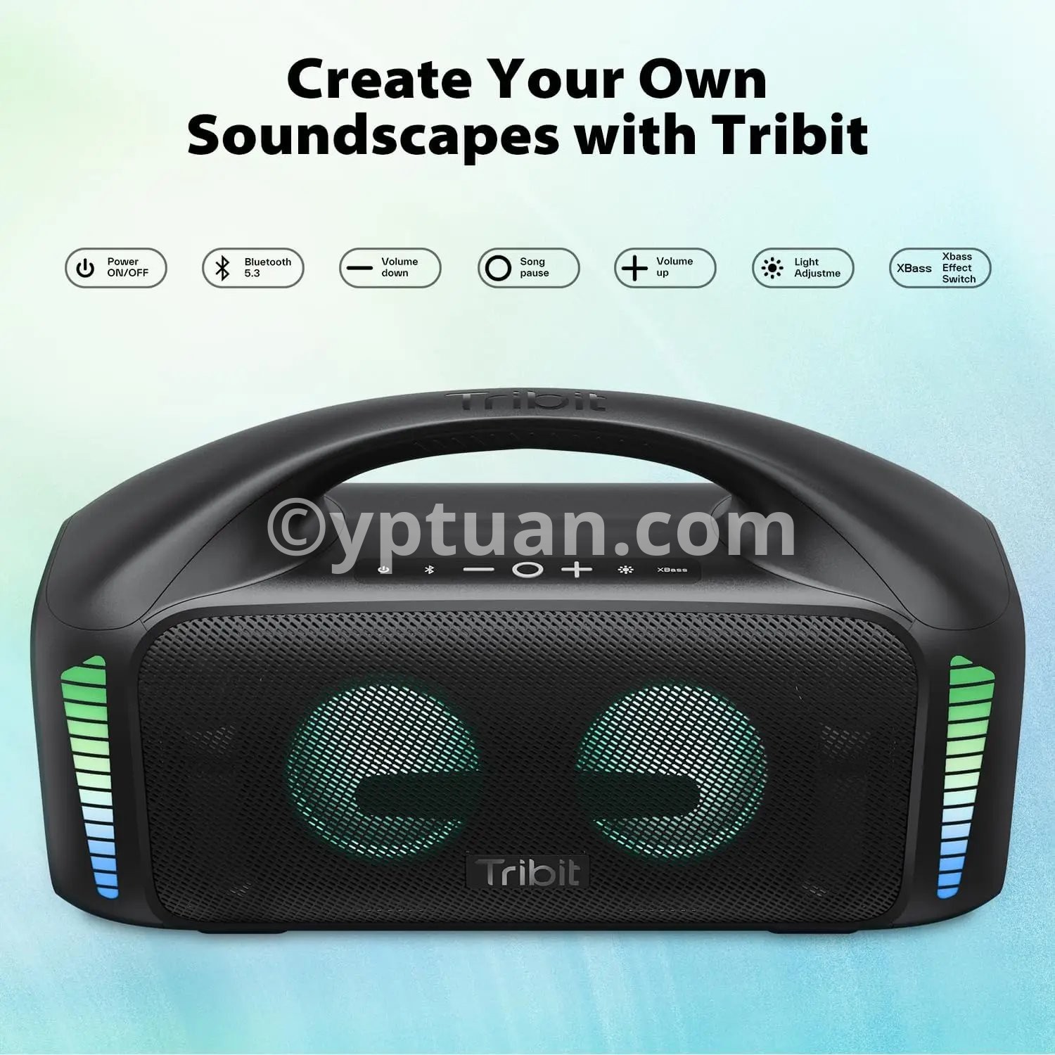 ● Best Wireless Boombox for 2022 - CNET ● Body-shaking XBass Tech: Providing a distortion-free, rich, and balanced sound, Tribit StormBox Blast is powerful 90w portable speaker you need; Press the XBass to pump the bass and feel the body-shaking experience of the StormBox Blast. ● Incredible 30H Playtime: Thanks to Tribit's Runstretch technology, this wireless speaker could provide 30 hours of dynamic sound; Whether it's a family barbeque, or a camping trip - day or night with the Tribit StormBox Blast. ● 32 Led Lights Sync to the Beats: The Tribit StormBox Blast is more than a portable speaker, it's a show; Clap your hands and move your body to every beat of your music with this loud stereo speaker. ● Bluetooth 5.3 & Customize EQ Modes: Advanced Bluetooth 5.3 technology ensures up to 150 feet of music connection; With Tribit APP, you can customize the sound without interrupting your music; We're cons ● IPX7 Waterproof Speaker with Powerbank Function: The outdoor waterproof speaker gives you the freedom to party from pool to shining sea and everywhere in between; No worries about the dead battery, the wireless bluetooth speaker could charge smart devices as a power bank.