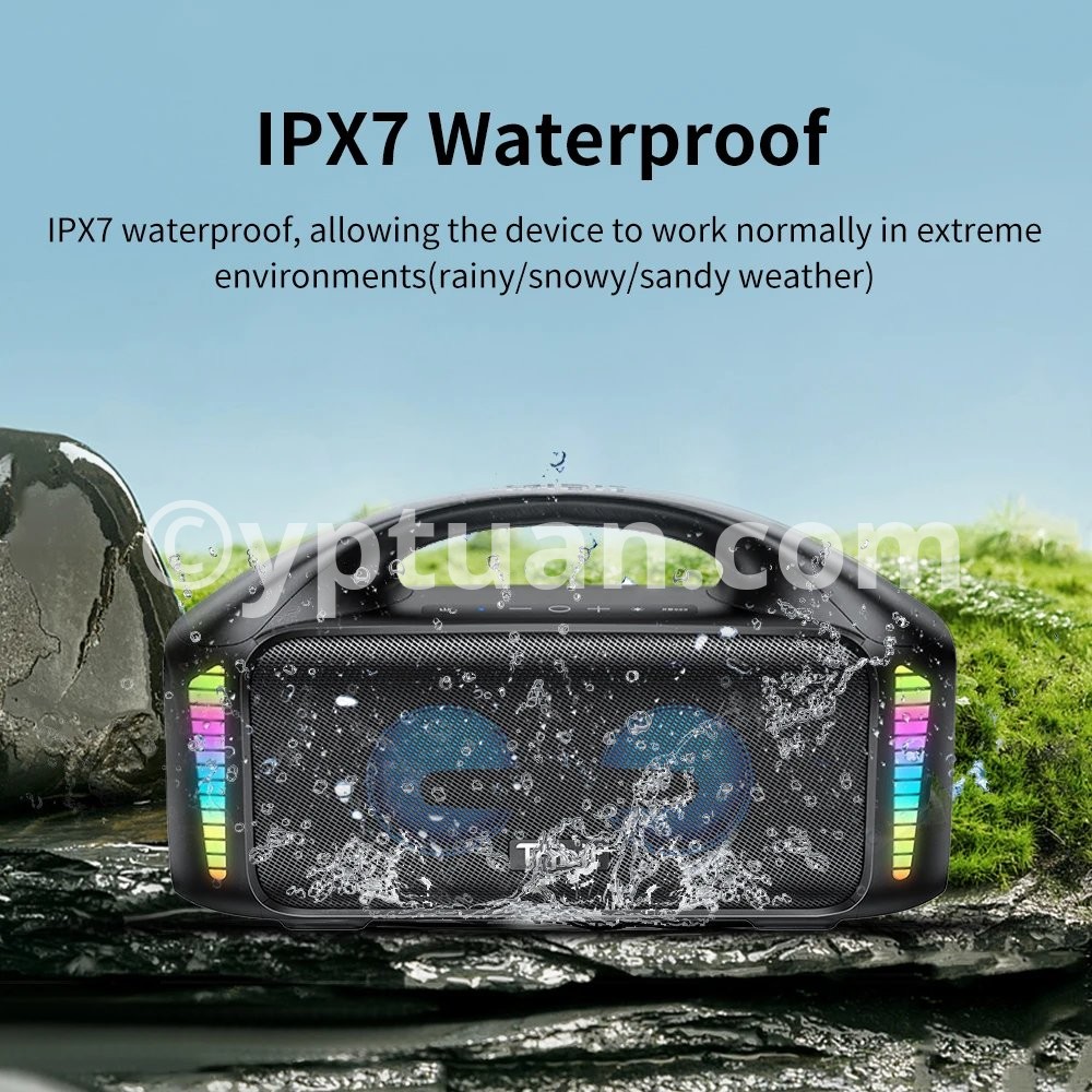 The 32 LED lights brighten, pulse, and sync to your music. The Tribit StormBox Blast is more than a speaker; it’s a show. Clap your hands and move your body to every beat of your music with Tribit’s StormBox Blast.