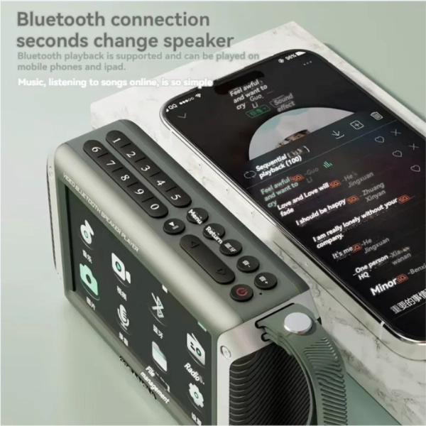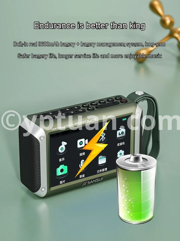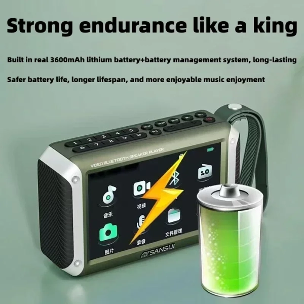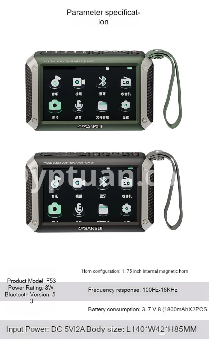 SANSUI F53 Wireless Bluetooth Speaker 4.3-inch LED Display Radio Portable FM Radio TF Card Slot MP4 Music Player Video Speaker