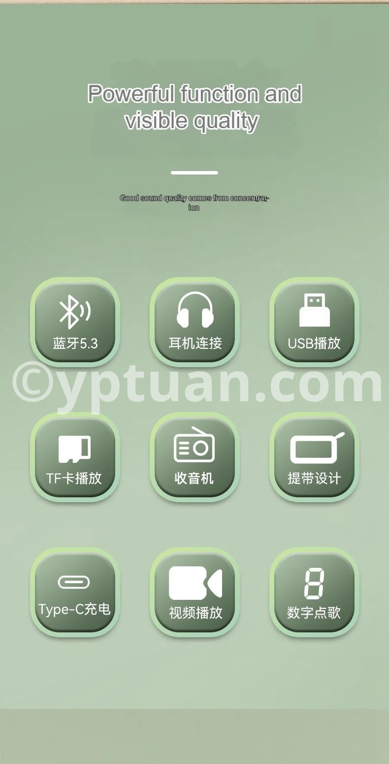 Function radio function Input voltage 220V Supports TF card USB and Bluetooth formats Applicable to the general population